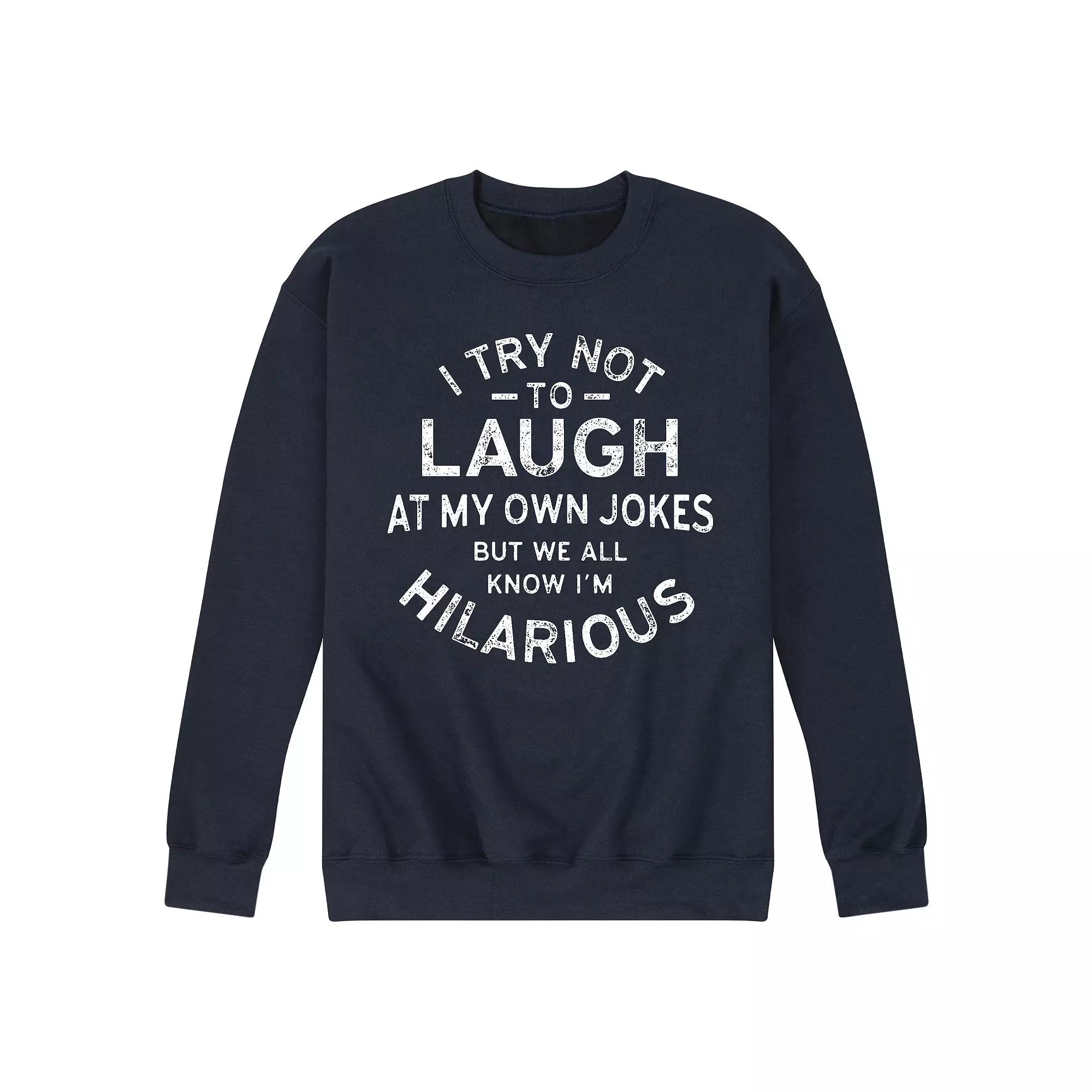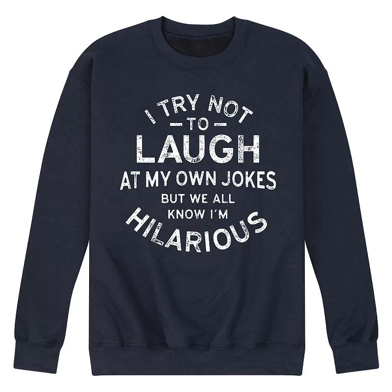 Keep an eye on style with this mens I Try Not to Laugh at My Own Jokes Fleece Sweatshirt. FEATURES Crewneck Long sleeveFABRIC & CARE Cotton/Polyester Machine wash Imported Color: Navy. Gender: male. Age Group: adult.