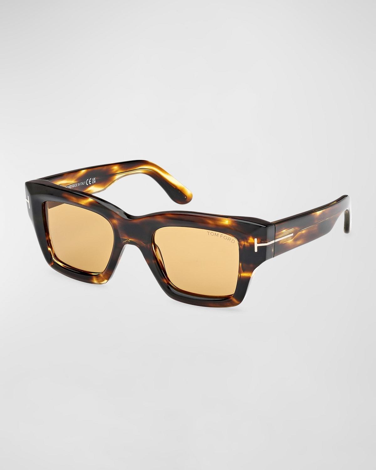 TOM FORD "Ilias" square sunglasses in acetate Lens/bridge/temple (in mm): 50-22-145 Solid-color lenses Logo script on the left lens Saddle nose bridge Metal T-temple decoration Tapered arms Branded curved temple tips Acetate 100% UVA/UVB protect Proposition 65 warning for California residents