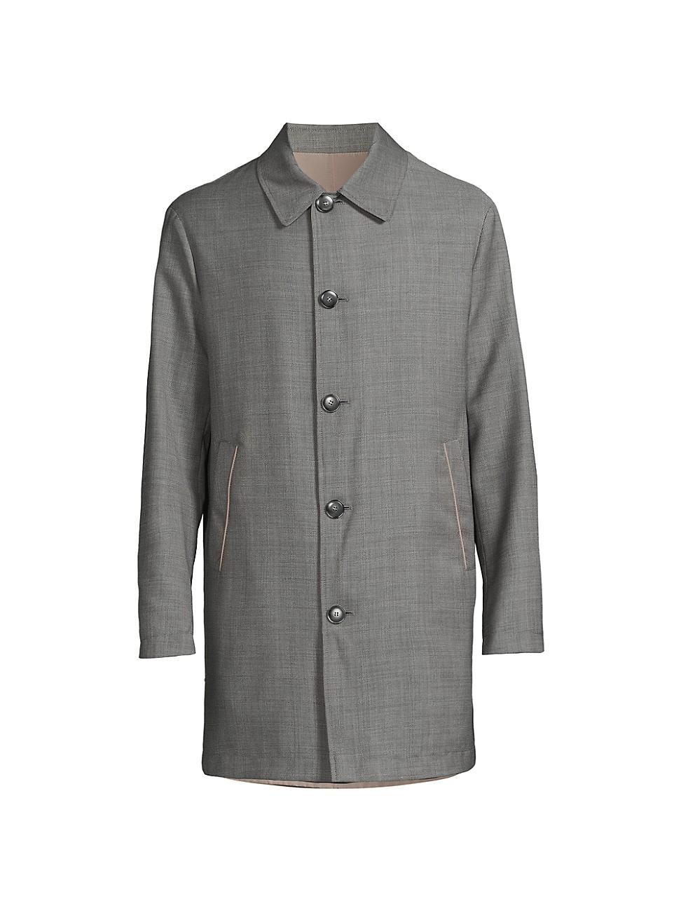 Canali presents the Impeccable Reversible raincoat, offering a versatile and stylish outerwear option for various weather conditions. Spread collar Long sleeves Side slit pockets Button-front closure Wool Spot clean Made in Italy SIZE & FIT About 35.5 from shoulder to hem Model measurements: 62 tall, 40 chest Model is wearing a US size 40R. Men Luxury Coll - Canali Clothing > Canali > Saks Fifth Avenue > Barneys. Canali. Color: Grey. Size: 48.