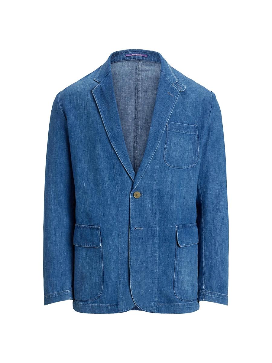 This version of Ralph Lauren Purple Labels most lightweight sportcoat is crafted in Italy from indigo-dyed japanese denim. Its cotton-and-linen fabric is washed to achieve the seasons beautiful blue shade. Notch lapels Long sleeves, stacked button cuffs Chest patch pocket Side flap-patch pockets Front button closure 80% cotton/ 20% linen Binding: 100% cotton Dry clean Made in Italy SIZE & FIT About 30.25 from shoulder to hem Shoulder: about 18.5 Sleeve inseam: about 18.25 Model measurements: 62 tall, 40 chest, 31 waist Model is wearing a US size 40R. Men Luxury Coll - Rl Purple Label > Ralph Lauren Purple Label > Saks Fifth Avenue > Barneys. Ralph Lauren Purple Label. Color: Shore Indigo. Size: 44.