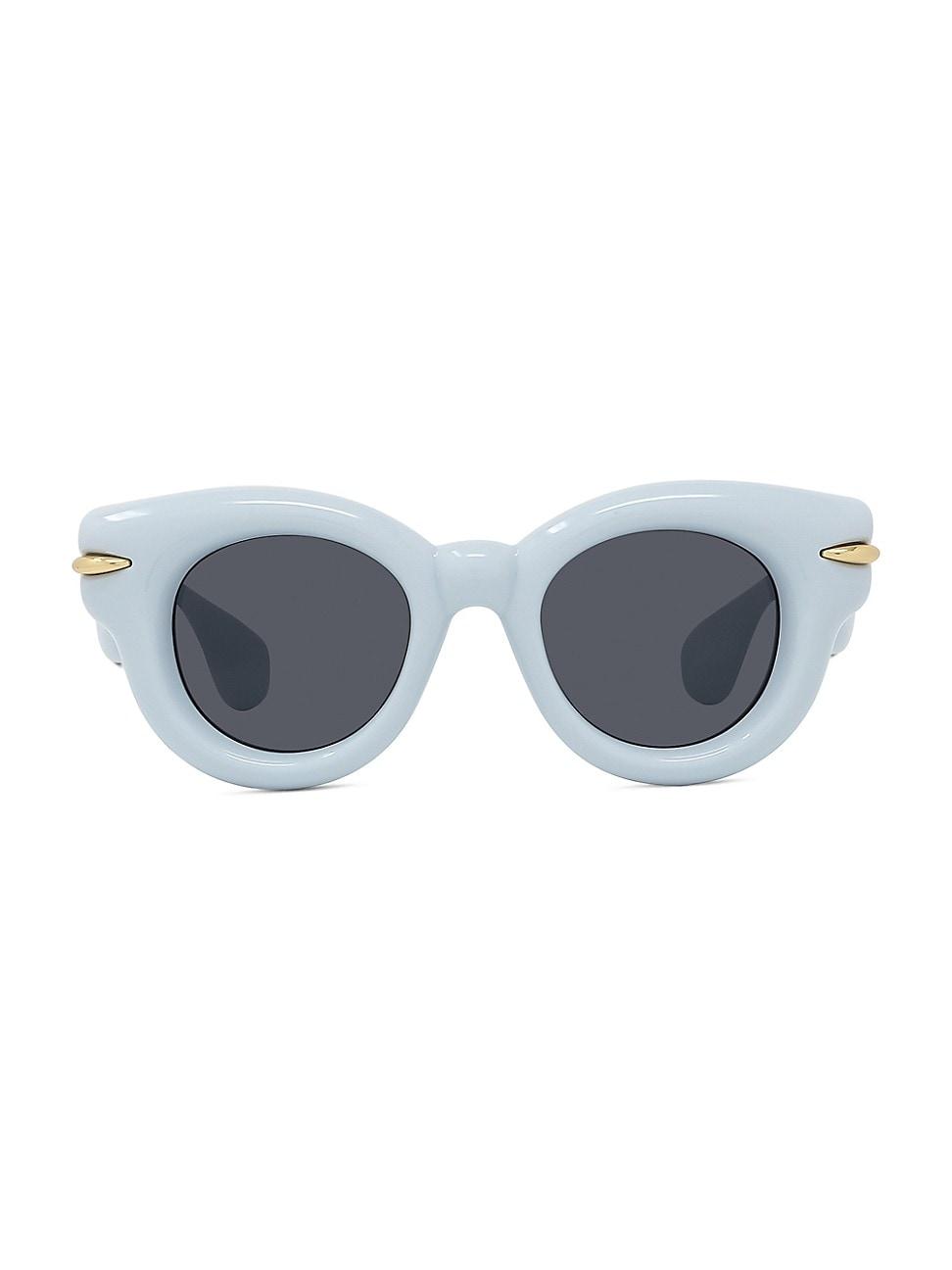 Loewe round sunglasses with chunky frames in acetate and nylon Eye/bridge/temple (in mm): 53-19-145 Solid-color lenses Full-rim frames Saddle nose bridge Tonal logo lettering at the temples Tapered arms; curved temple tips Acetate/nylon/polyamide Hand wash 100% UVA/UVB protection Made in Italy