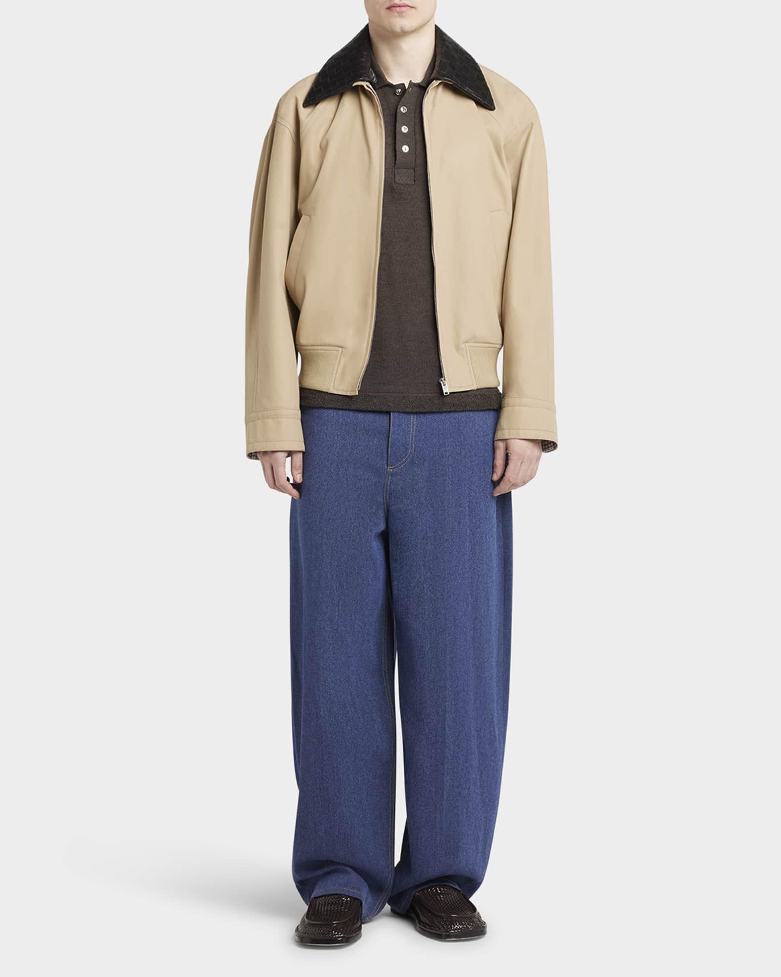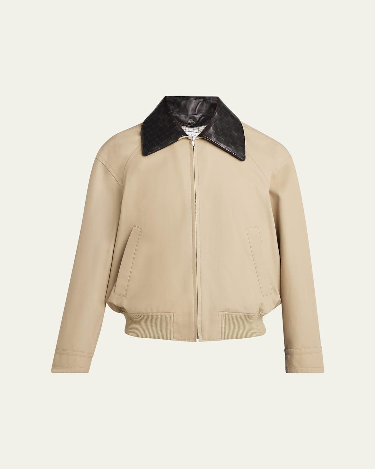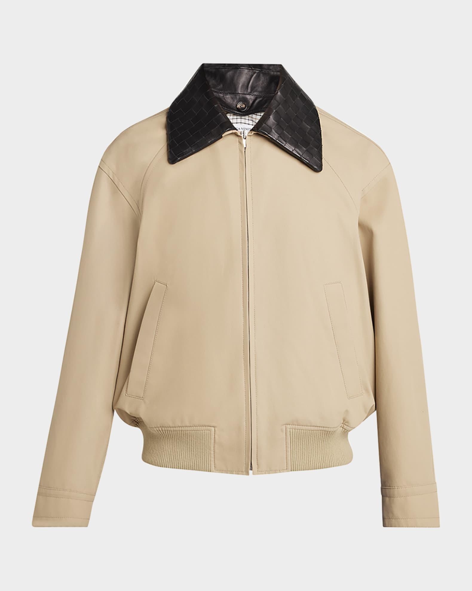 Men's Intrecciato-Collar Blouson Jacket in Fluid Twill