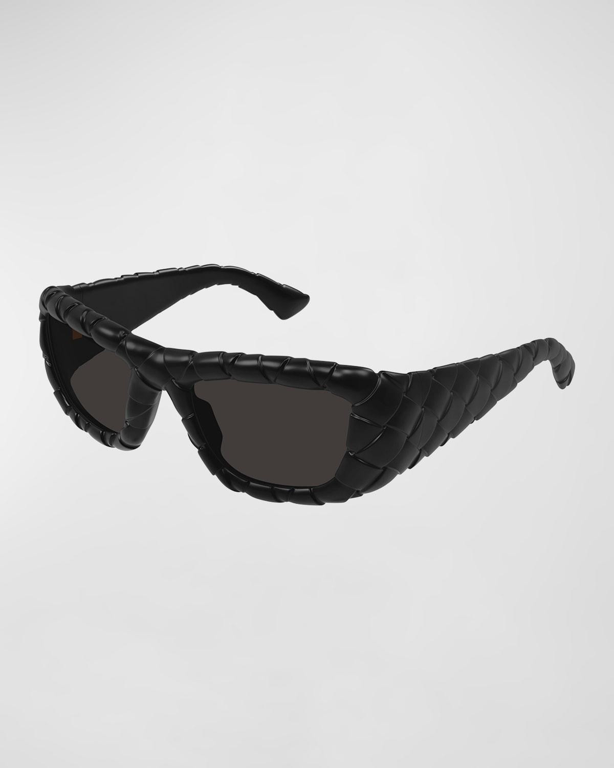Bottega Veneta BV1303S rectangle sunglasses in acetate feature a woven Intreccio design Lens/bridge/temple (in mm): 51-20-145 Solid-color lenses Saddle nose bridge Thick, tapered arms Curved temple tips Acetate 100% UVA/UVB protection Made in Japan