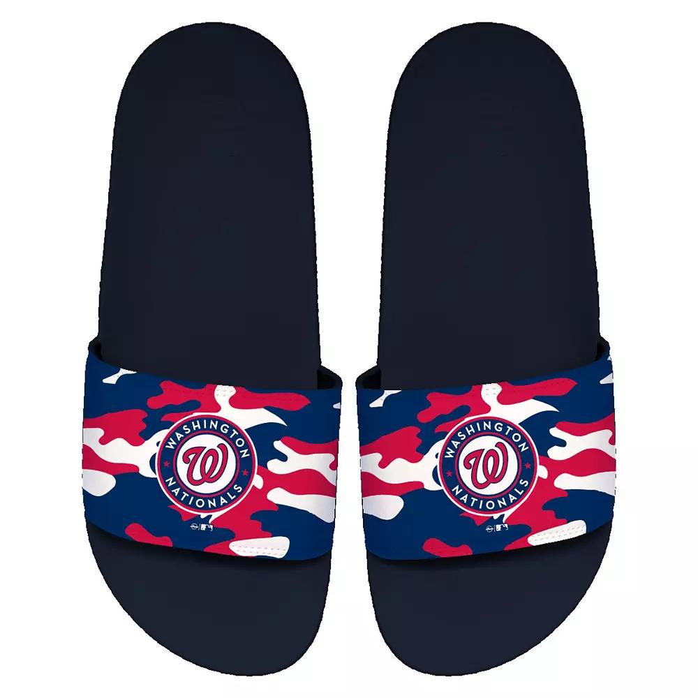 When you wear these Motto slide sandals from ISlide, you can fill every step you take with team spirit. They feature a stylish camo design and the iconic Washington Nationals logo. The built-in arch support ensures a comfortable wear experience everywhere you go.