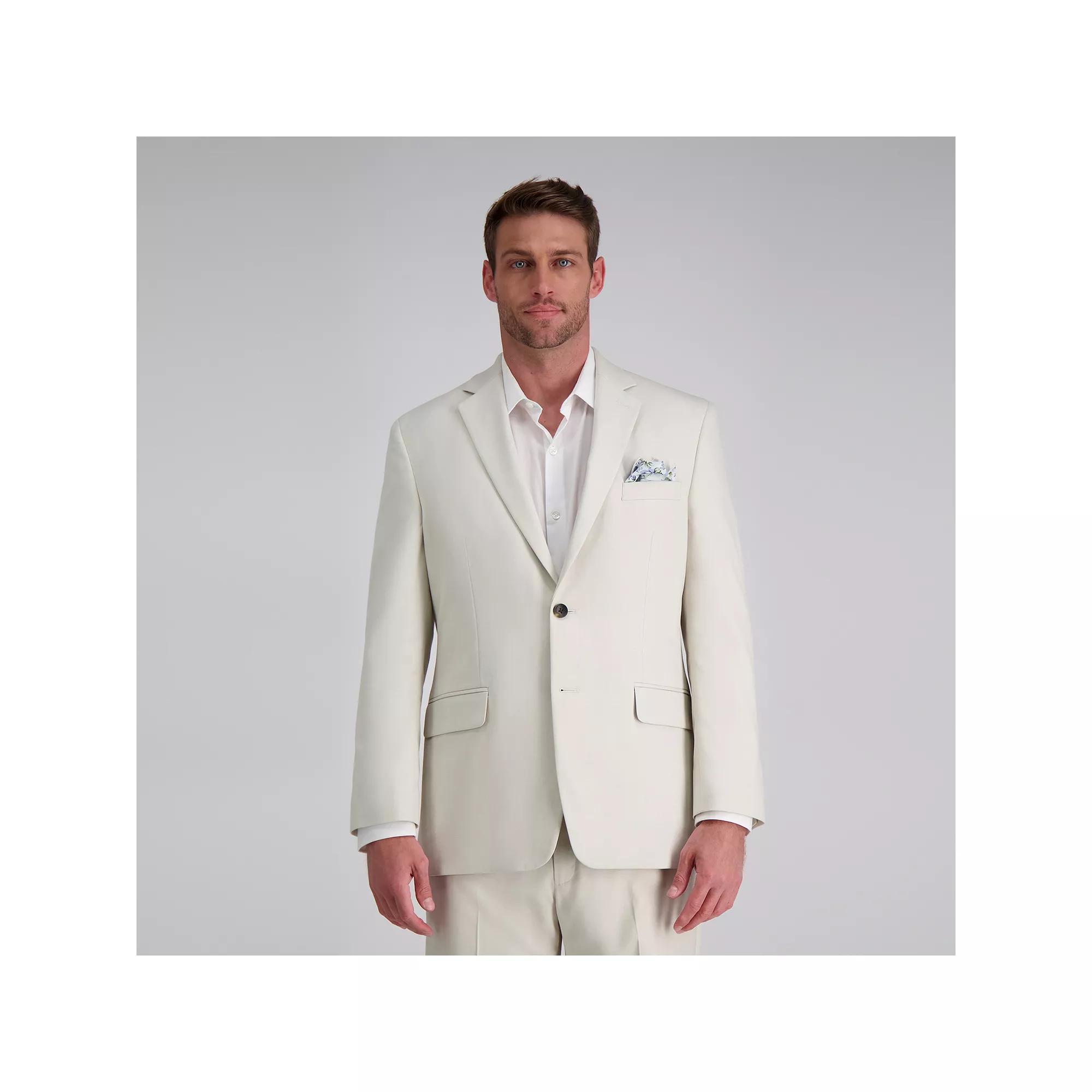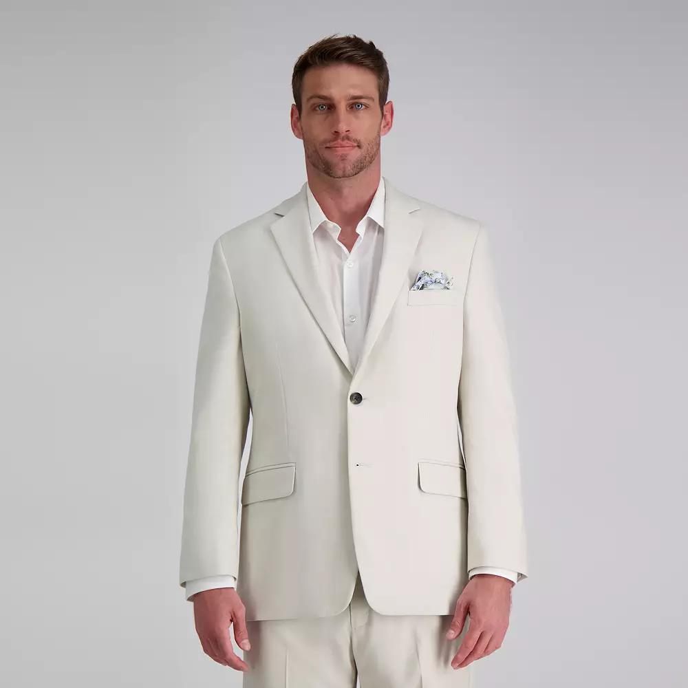 Versatile style. Wear this men's Haggar suit jacket with the matching pants to impress at the office, then switch to denim jeans for a casual evening on the town. Click on this MEN'S GUIDE to find the perfect fit and more!Watch the product video here.PRODUCT FEATURESStretch fabric blendNotched lapelCenter back ventFully-lined piped interior2-button frontLong sleevesFIT & SIZINGClassic fit features relaxed arm holes, regular body and traditional sleeve openingsFABRIC & CAREPolyester, viscose, rayon, spandexDry cleanImported Size: 46 Short. Color: Natural. Gender: male. Age Group: adult.