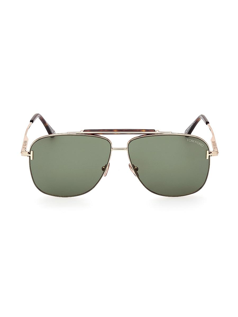 Tom Fords Jaden sunglasses feature aviator lenses and a classic metal frame. 100% UV protection Solid lenses Cloth and case included Metal Made in Italy SIZE 60mm lens width 12mm bridge width 145mm temple length ABOUT THE BRAND After 10 years of serving as the Creative Director for several international luxury fashion houses, Tom Ford launched his own line of optical frames, sunglasses and beauty in 2005. The following year he debuted menswear, and in 2010, womens ready-to-wear. His sleek, tailored aesthetic has since catapulted him to mega-brand status. Soft Accessories - Men Sunglasses > Tom Ford > Saks Fifth Avenue > Barneys. TOM FORD. Color: Rose Gold Green.