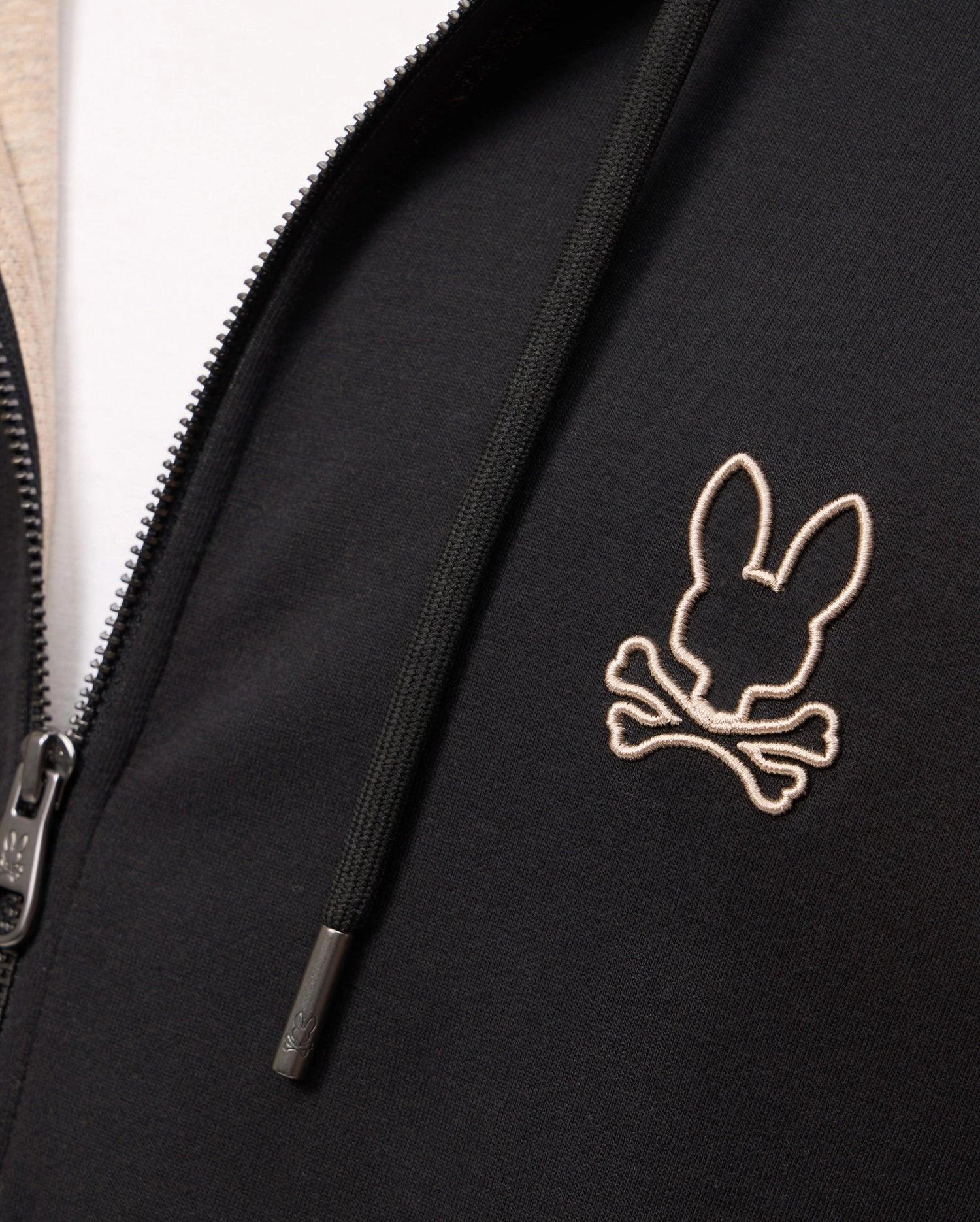 The James zip-up hoodie features a double-faced premium jersey membrane for ultimate durability and comfort. An embroidered outlined Bunny prachic and tonal accents adds touches of style. This is your go-to for stylish warmth—perfect for lounging or everyday wear.Knit - 93% cotton, 7% nylonMade in ChinaRegular fitSolid patternZipZipModel height is 6'1 (approx. 185cm) and is wearing a size medium.