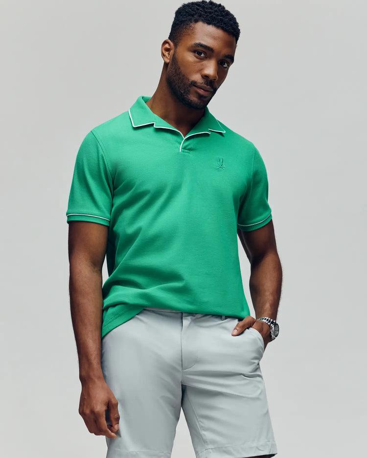Effortlessly cool and ultra-comfortable, the Mens Jaxon Soft Pique Camp Collar Polo in Simply Green from Psycho Bunny in is your go-to piece this season.