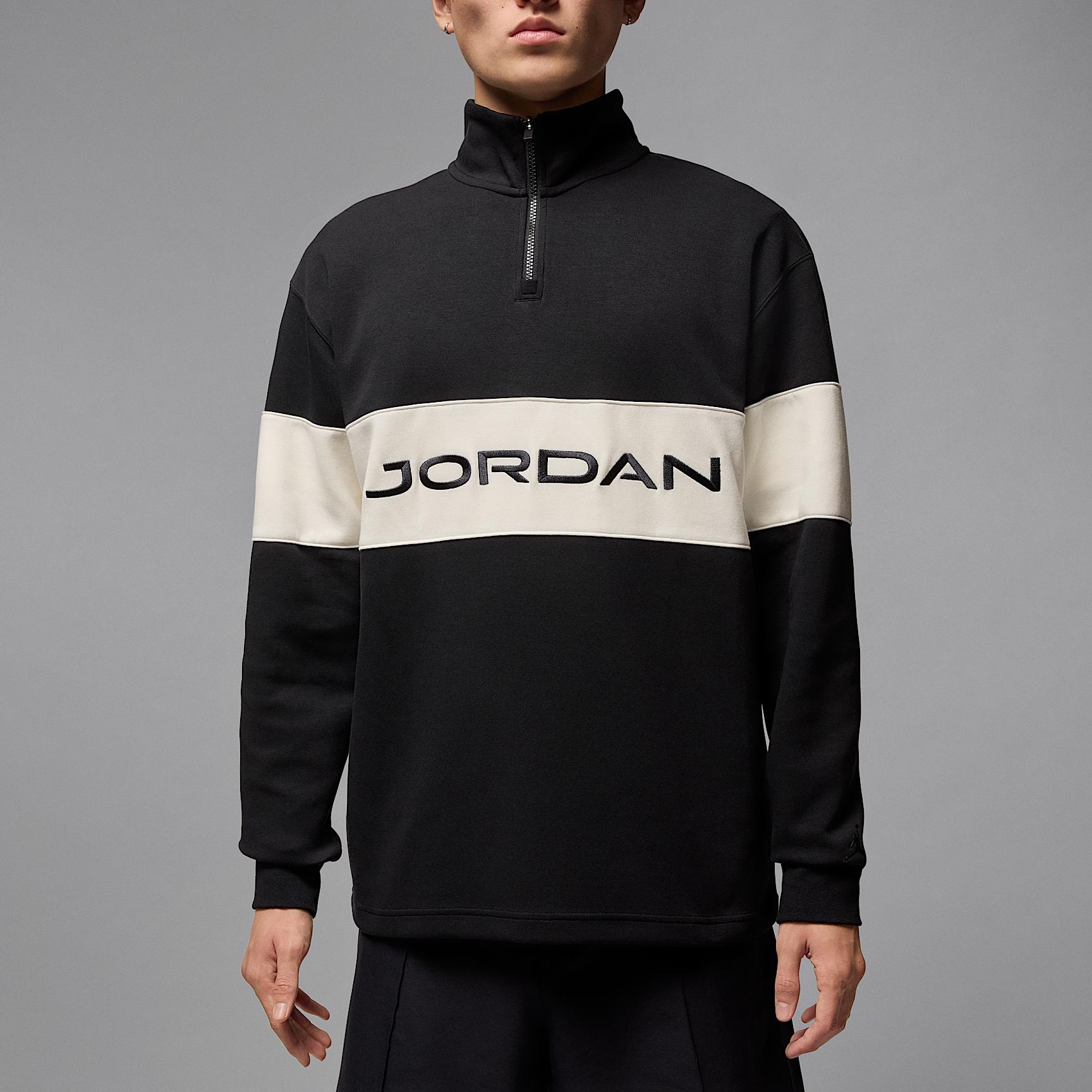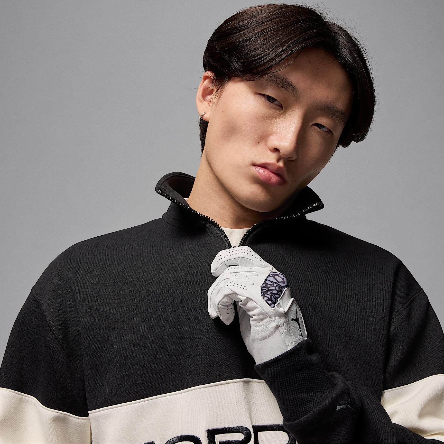 Ditch the dress code. This lightweight fleece top lets your style do the talking. It offers more than just looks, thoughâa quarter-zip design and our sweat-wicking tech help keep you comfortable through all 18 holes. Benefits:Nike Dri-FIT technology moves sweat away from your skin for quicker evaporation, helping you stay dry and comfortable. Our premium, smooth-on-both-sides fleece feels warmer and softer than ever, while keeping the same lightweight build you love. [] Product Details:69% cotton/31% polyester. Ribbed cuffs. 1/4-zip design. Machine wash. Imported. Style: HF9919; Color: Black/Sail/Dark Shadow; Size: S; Gender: Male; Age Group: Adult | Jordan Sport Men's Dri-FIT 1/4-Zip Golf Top in Black, Size: Small | HF9919-010
