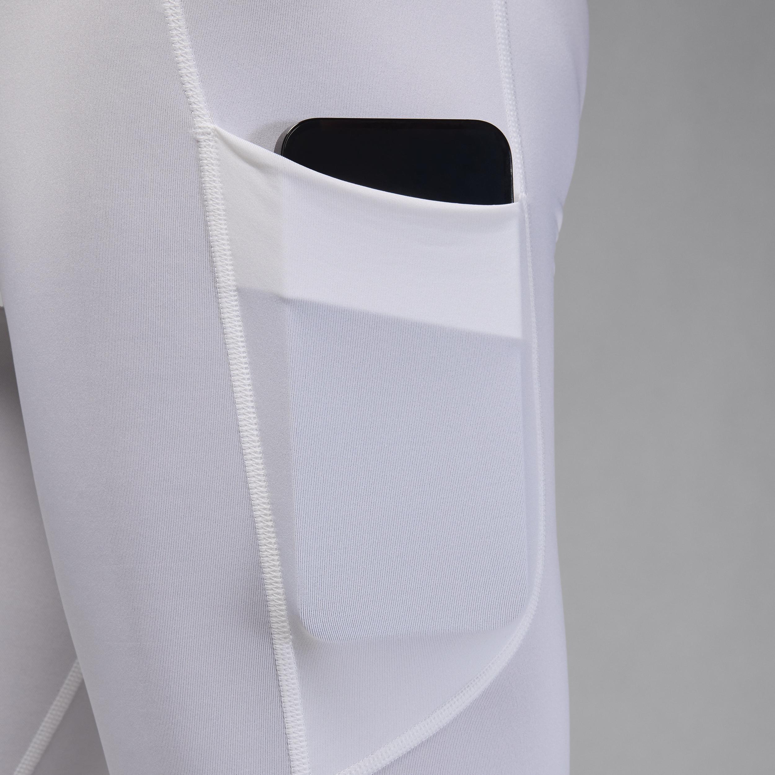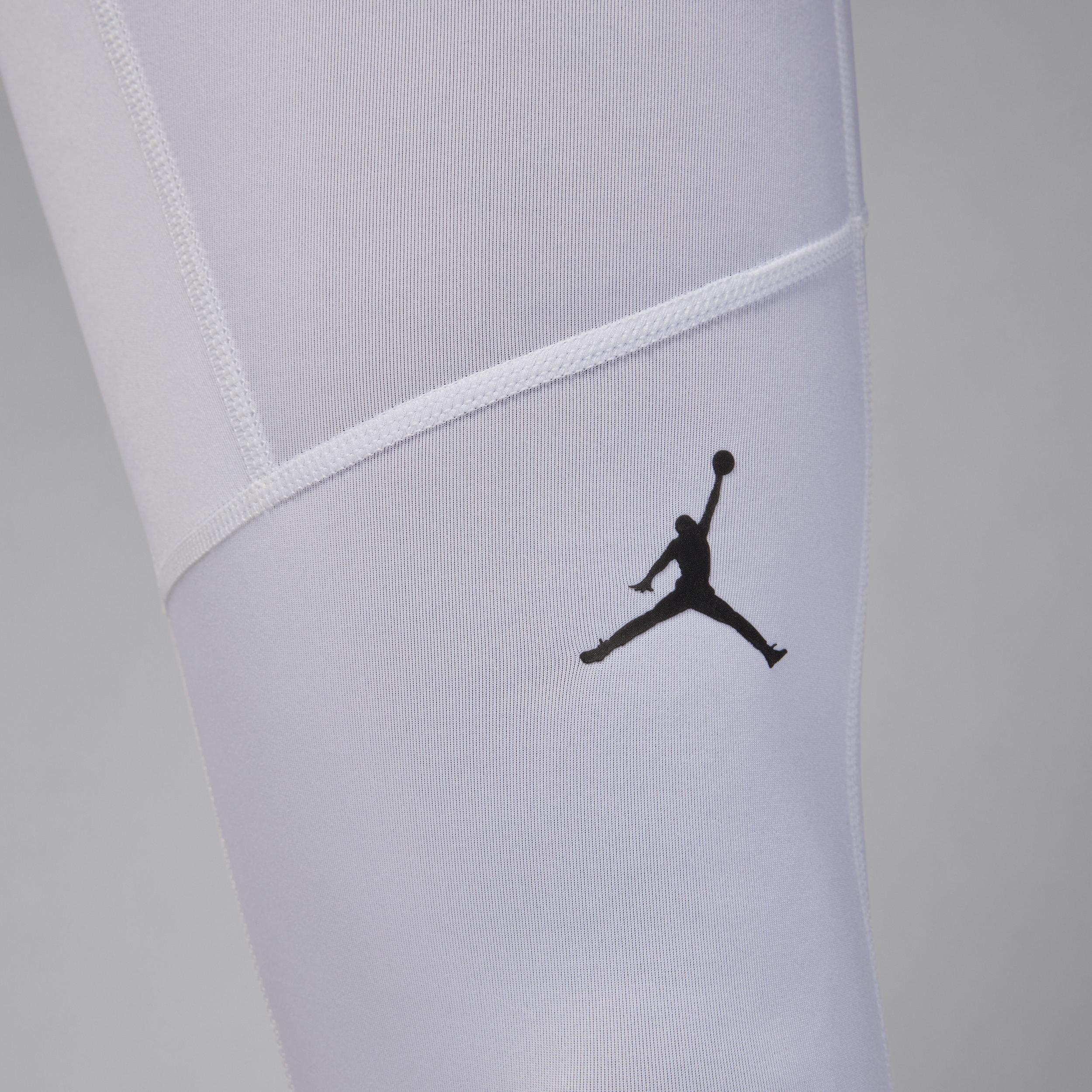 Made from smooth, stretchy fabric, these 3/4-length tights hug your body for a supportive feel. Plus, our sweat-wicking Dri-FIT tech helps you feel confident and comfortable when things heat up. Benefits:Nike Dri-FIT technology moves sweat away from your skin for quicker evaporation, helping you stay dry and comfortable. Pockets on the thighs provide storage for small essentials and can fit most smartphones. Stretchy jacquard waistband helps provide a snug, stay-put fit. Mesh front pouch helps add breathability. Product Details:Body: 90% polyester/10% spandex. Mesh: 92% polyester/8% spandex. Machine wash. Imported. Style: FV8634; Color: White/Black; Size: 2XL; Gender: Male; Age Group: Adult | Jordan Sport Mens Dri-FIT 3/4-Length Tights in White, Size: 2XL | FV8634-100