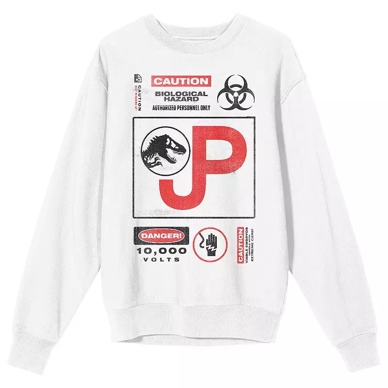 Hell love the look and feel of this Mens Jurassic Park Caution Hazard Graphic Tee. Hell love the look and feel of this Mens Jurassic Park Caution Hazard Graphic Tee. FEATURES Crewneck Long SleevesFABRIC & CARE Cotton/Polyester Machine wash Imported Color: White. Gender: male. Age Group: adult.