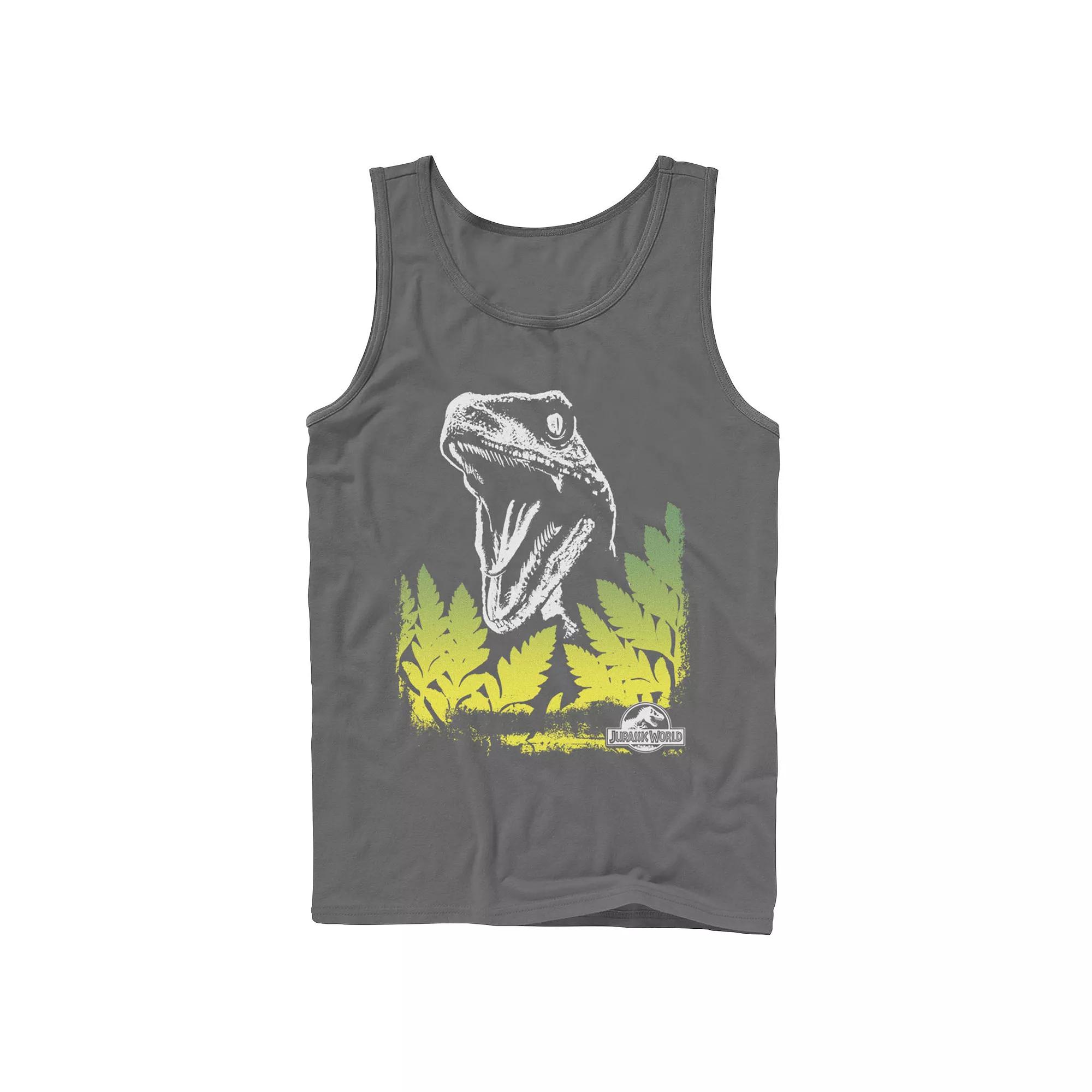 Men's Jurassic World Raptor Roaring Behind Bushes Graphic Tank Top,