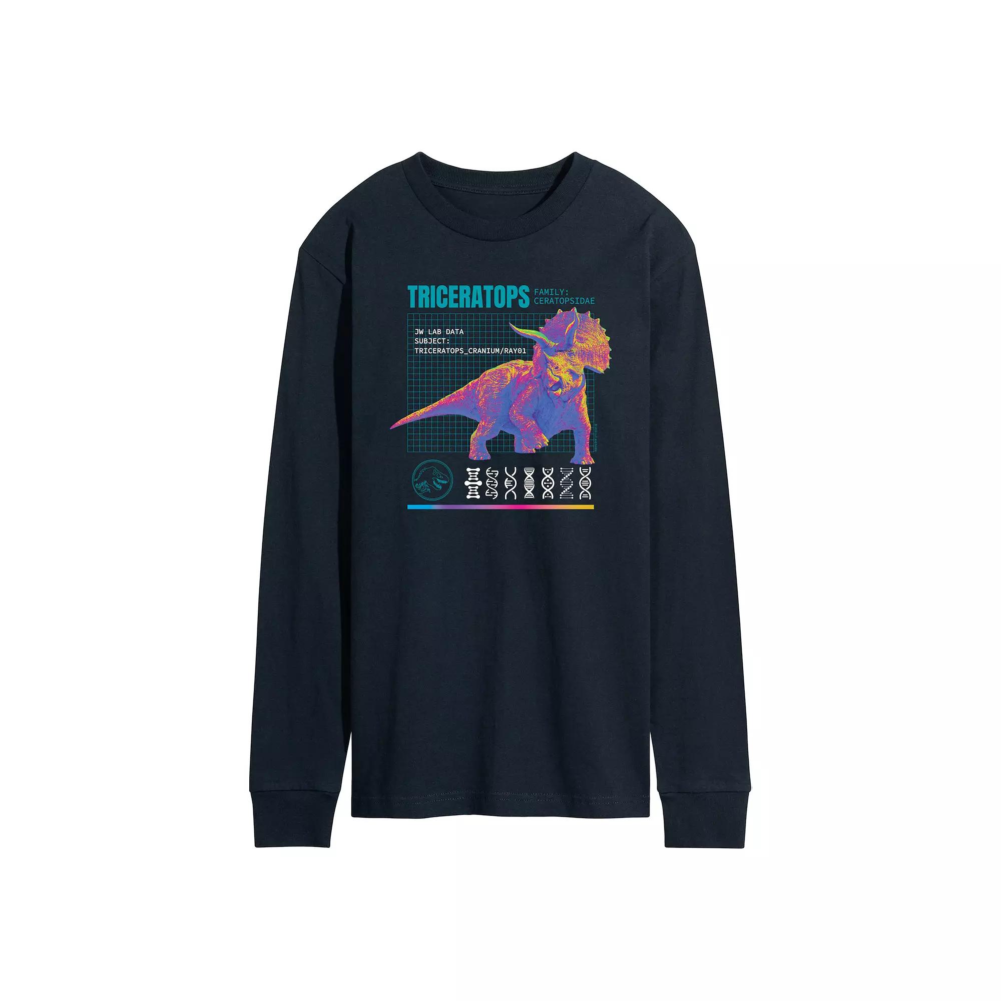 Get ready for the adventure of a lifetime with this Mens Jurassic World Triceratops Long Sleeve. FEATURES Crewneck Long sleeveFABRIC & CARE Solid colors: cotton; Heather colors: cotton, polyester Machine wash Imported Color: Black. Gender: male. Age Group: adult. Material: Cotton Blend.