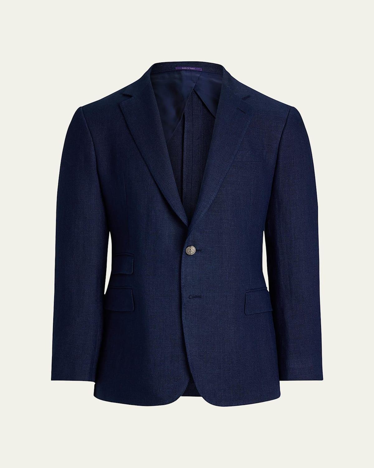 Hand-tailored in Italy, the Kent combines a lighter construction with fine canvassing and a soft shoulder to create a more natural profile. This version is crafted using a linen dobby cloth that was custom-developed for ralph lauren and finished with “rl”-engraved metal buttons. Ralph Lauren Kent hand-tailored suit jacket crafted of dobby cloth Size 40R has a 30" front body length, a 29.75" back body length, an 18.5" shoulder, and a 17.75" sleeve inseam Lighter construction with finer canvassing and a roped shoulder Notched lapels Two-button closure Left chest welt pocket. Ticket pocket. Two front waist flapped pockets. Two interior chest pockets. Unfinished cuffs ready for custom-tailoring Double-vented back Linen Lining: Cupro/viscose/wool Dry clean Made in Italy