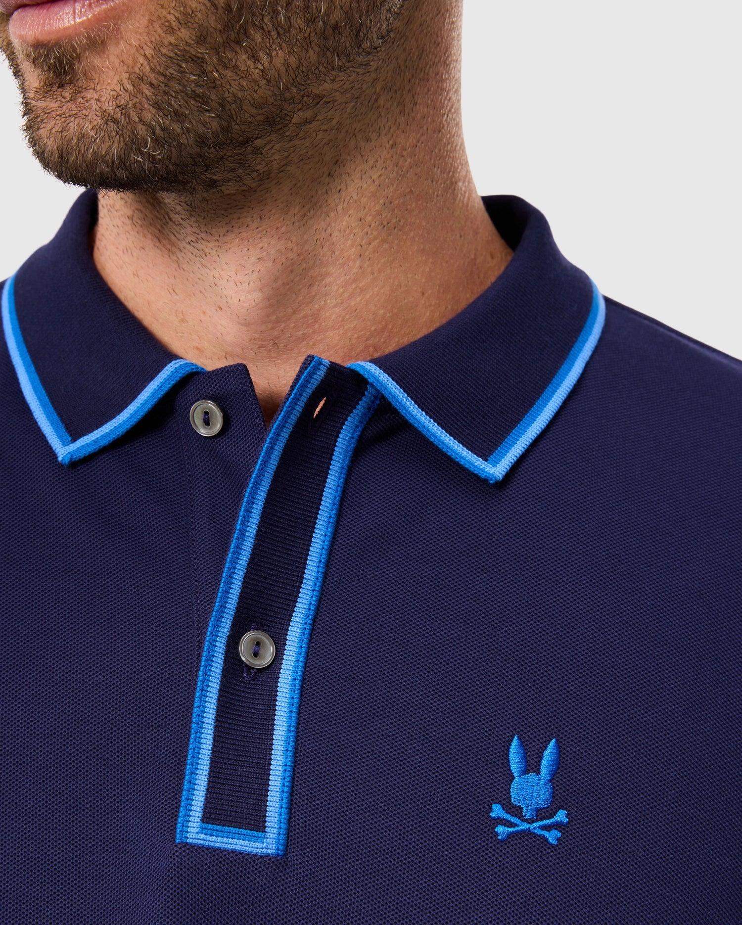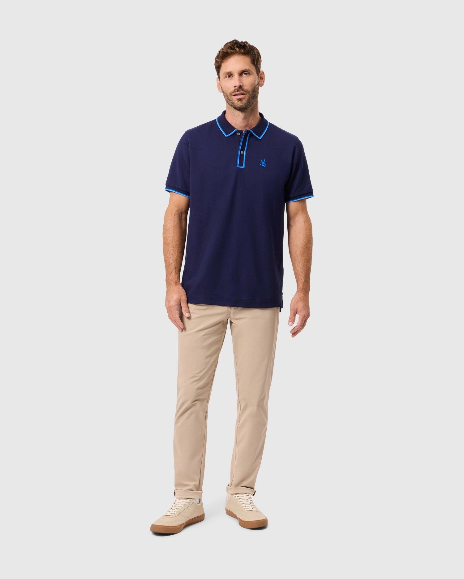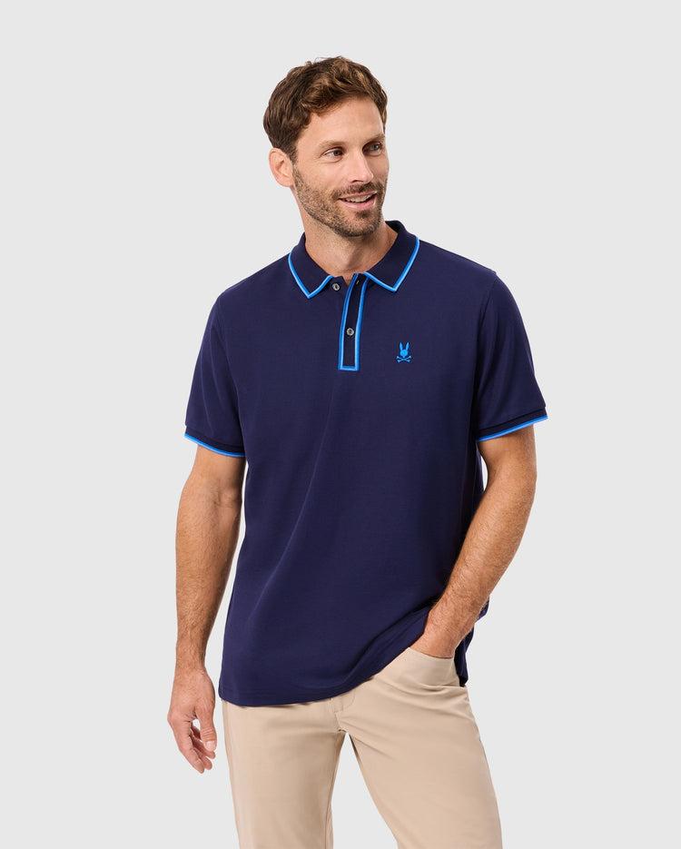 With a frame out collar and double contrast tipping to flatter your best features, the Kent Polo is knit from 100% Pima cotton for those who don't mind a bit of attention. Knit - 100% pima cottonMade in PeruRegular fitSolid pattern Frame out collar with double contrast tipping top placket Contrast tipping cuff Contrast piping and side vent tape Narrow collar and placket Direct embroidery contrast filled in bunny Model height is 6'1 (approx. 185cm) and is wearing a size medium.Stylish men's pima cotton polo Comfortable pique polo shirt Pima cotton polo for men