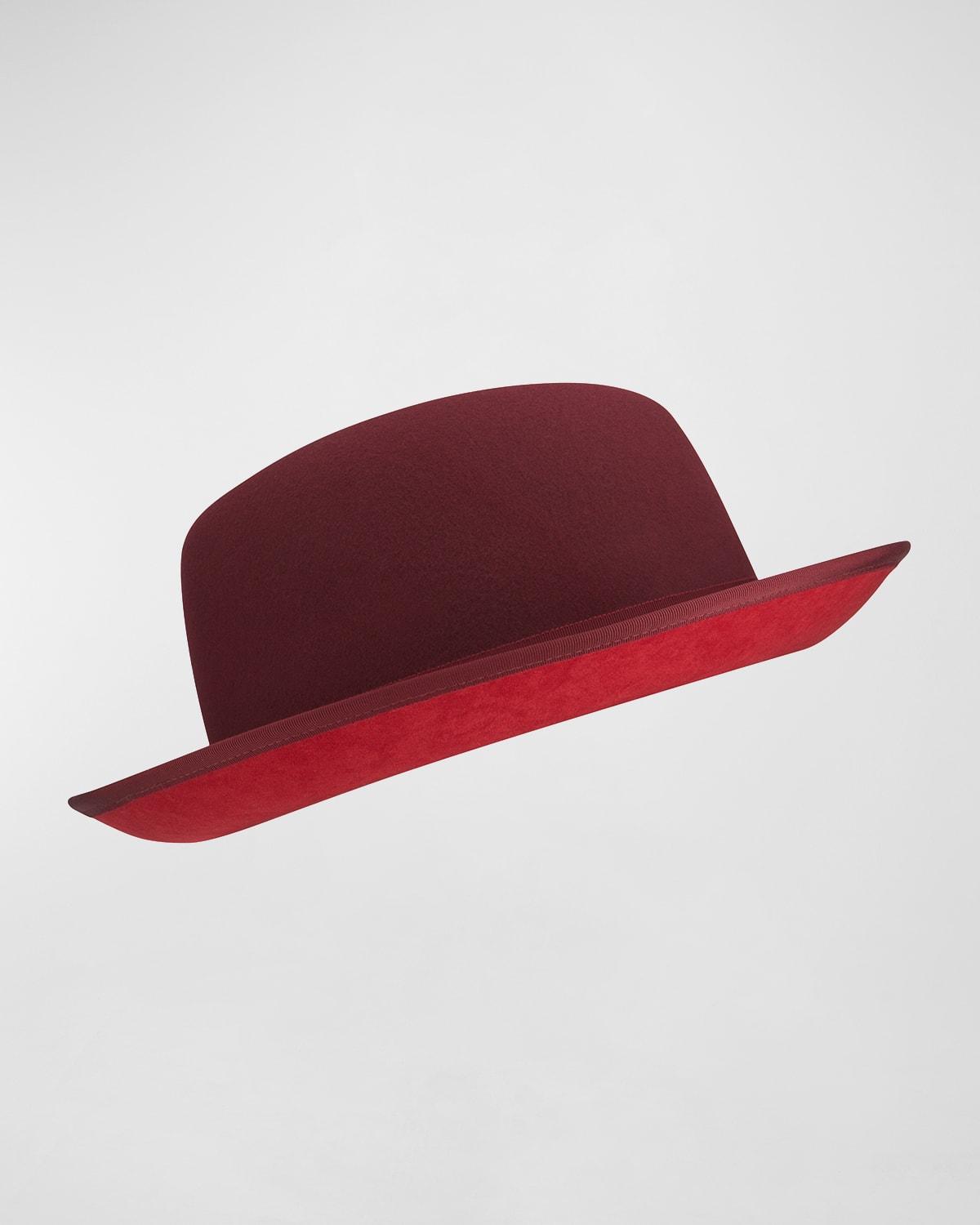 Red Wool Felt Dress Hat Center Crease Stingy Snap Brim
