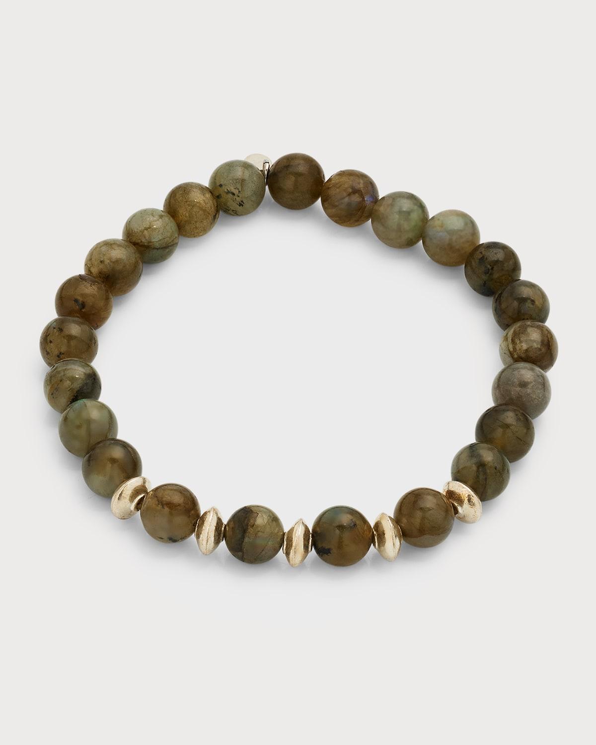 Jan Leslies corded bracelet with faceted Labradorite and sterling silver beads. Labradorite bead Sterling silver Elastic waistband Imported SIZE 7-9. Men Accessories - Jewelry > Jan Leslie > Saks Fifth Avenue > Barneys. Jan Leslie. Color: Grey.