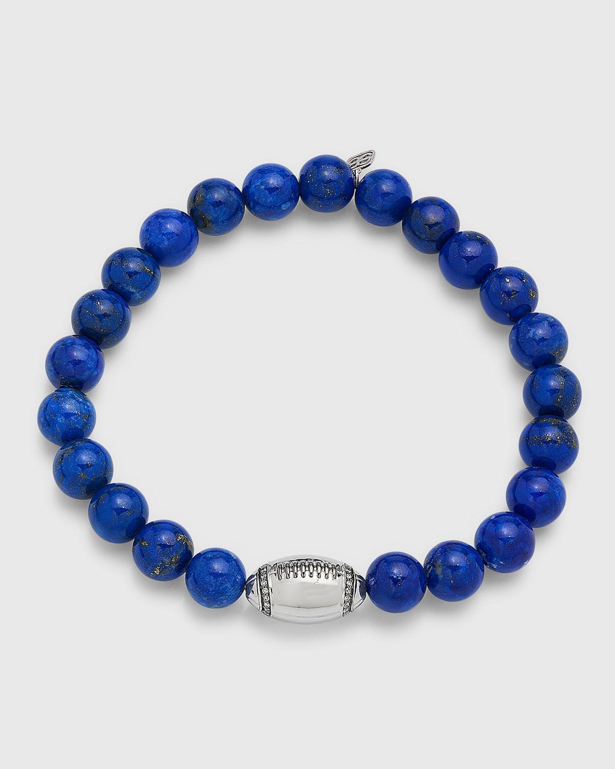 Mens Lapis Lazuli Bead Bracelet with Football Bead