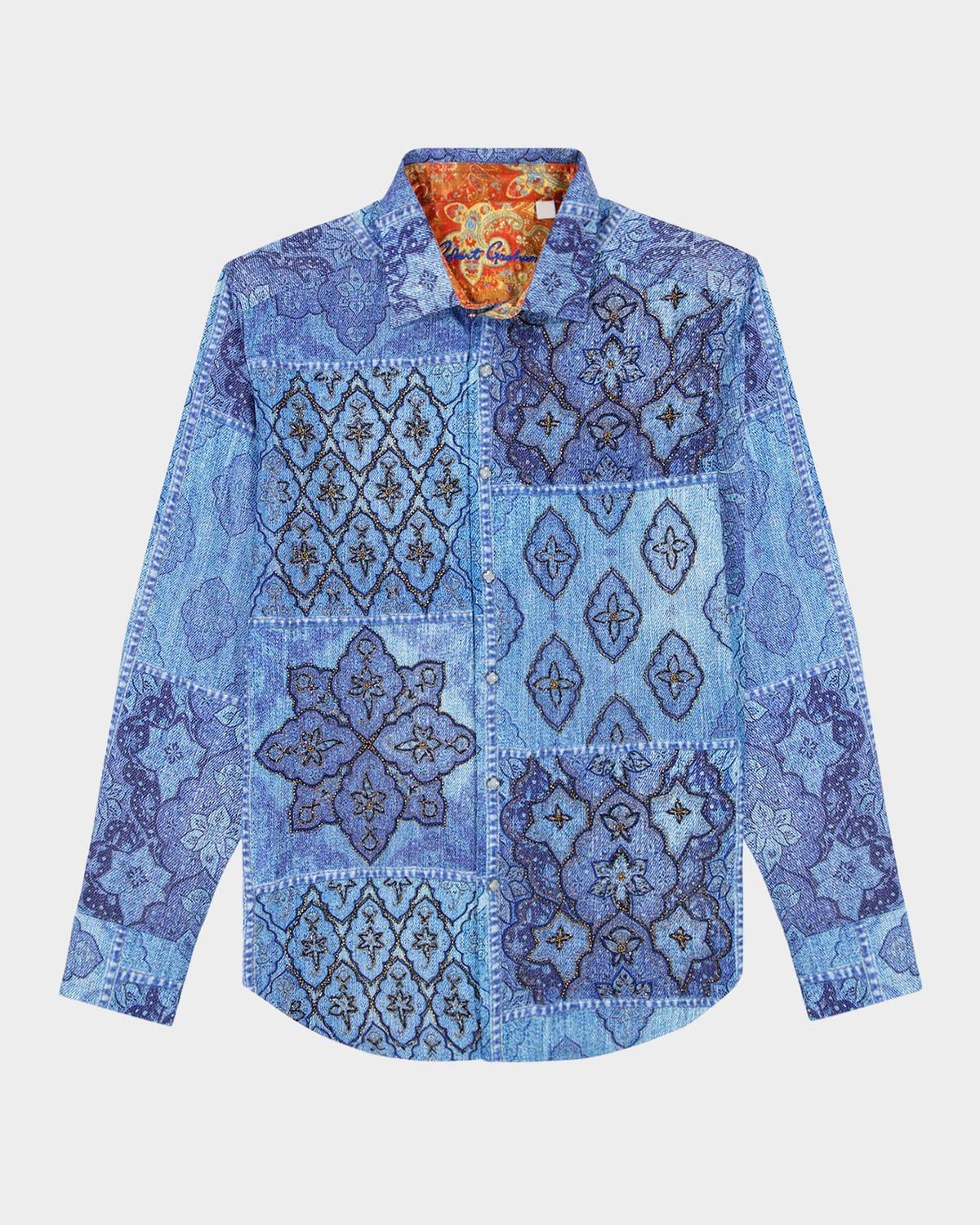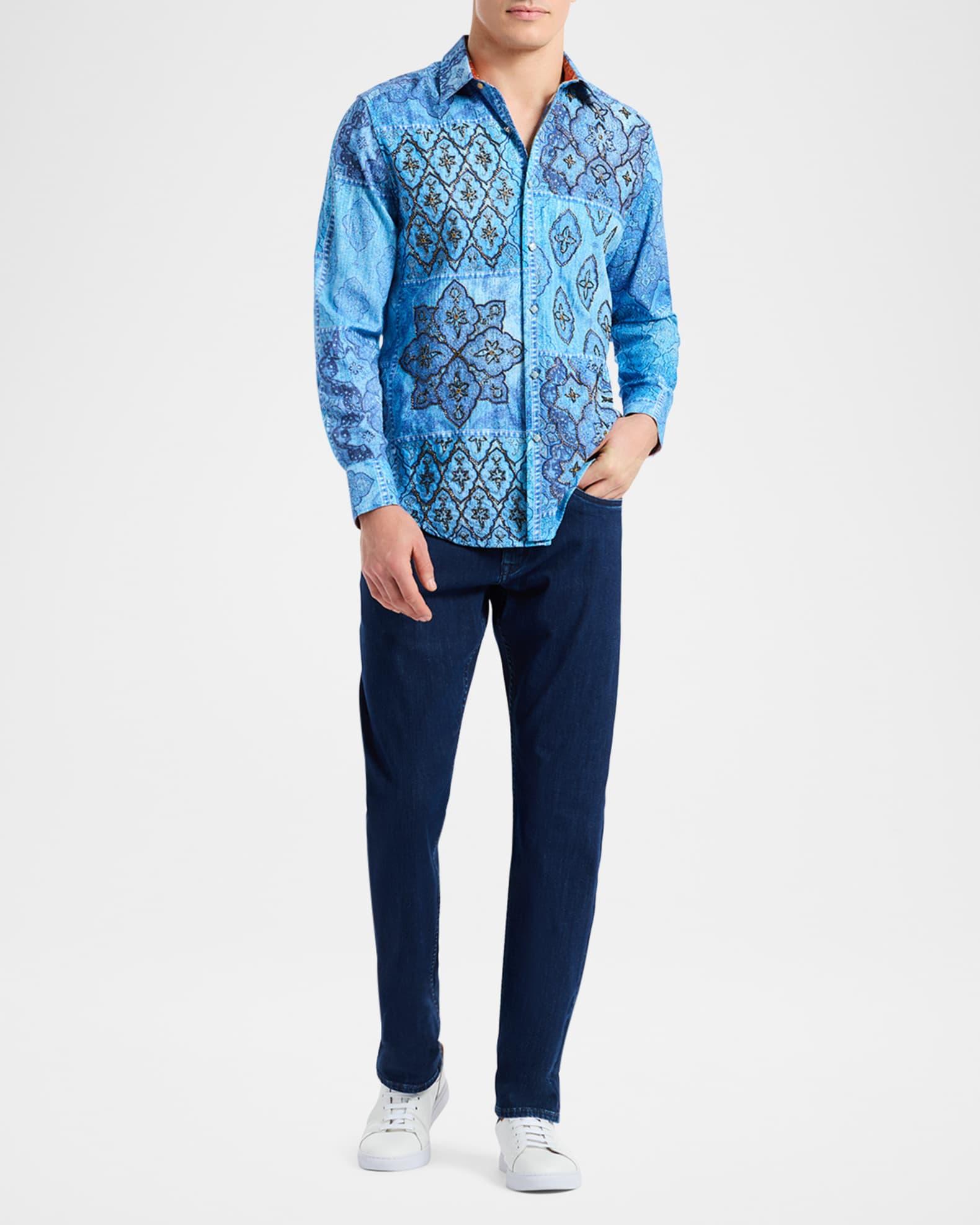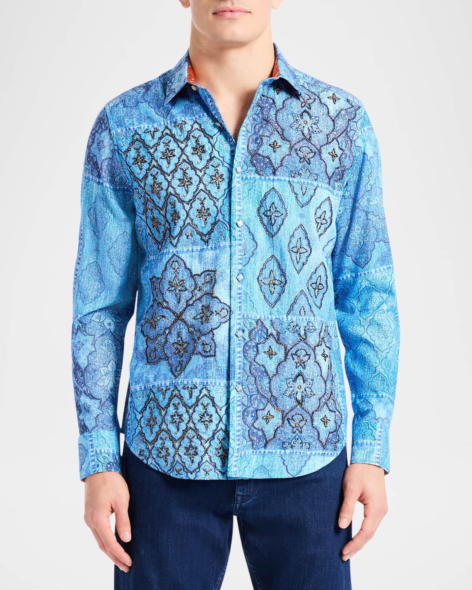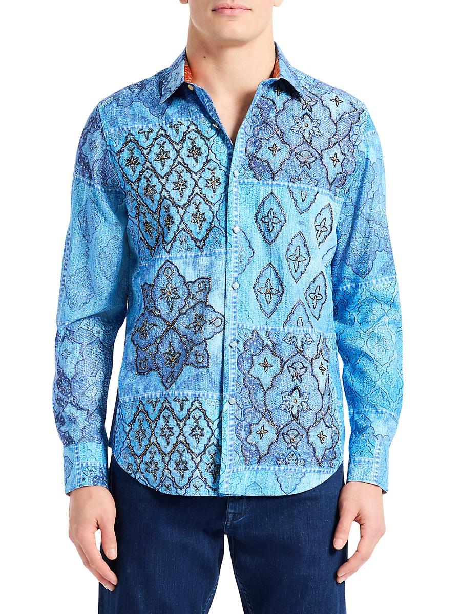 Robert Grahams printed Le shirt is styled with metallic embroidery and sequin embellishments. Spread collar Long sleeves Button-front closure 100% viscose Machine wash Imported SIZE & FIT Model measurements: 62 tall, 40 chest, 31 waist Model is wearing a US size Medium. Mens Modern Coll & Outer - Contemp Classic Collecti > Robert Graham > Saks Fifth Avenue > Barneys. Robert Graham. Color: Blue. Size: XL.