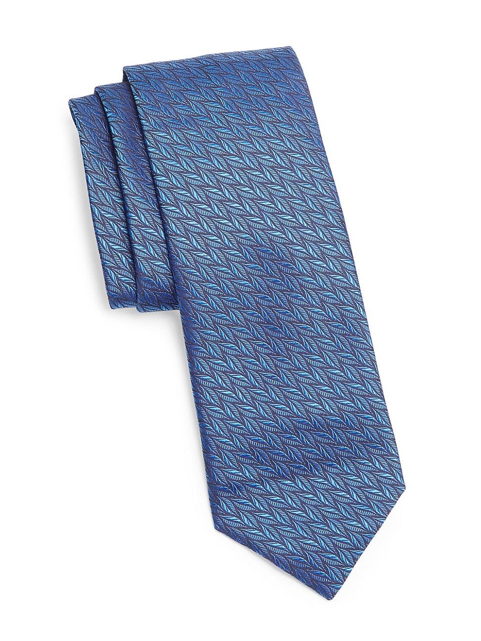 Canali tie with an allover woven leaf pattern Approx. 3 wide Self-tie style Silk Dry clean Made in Italy
