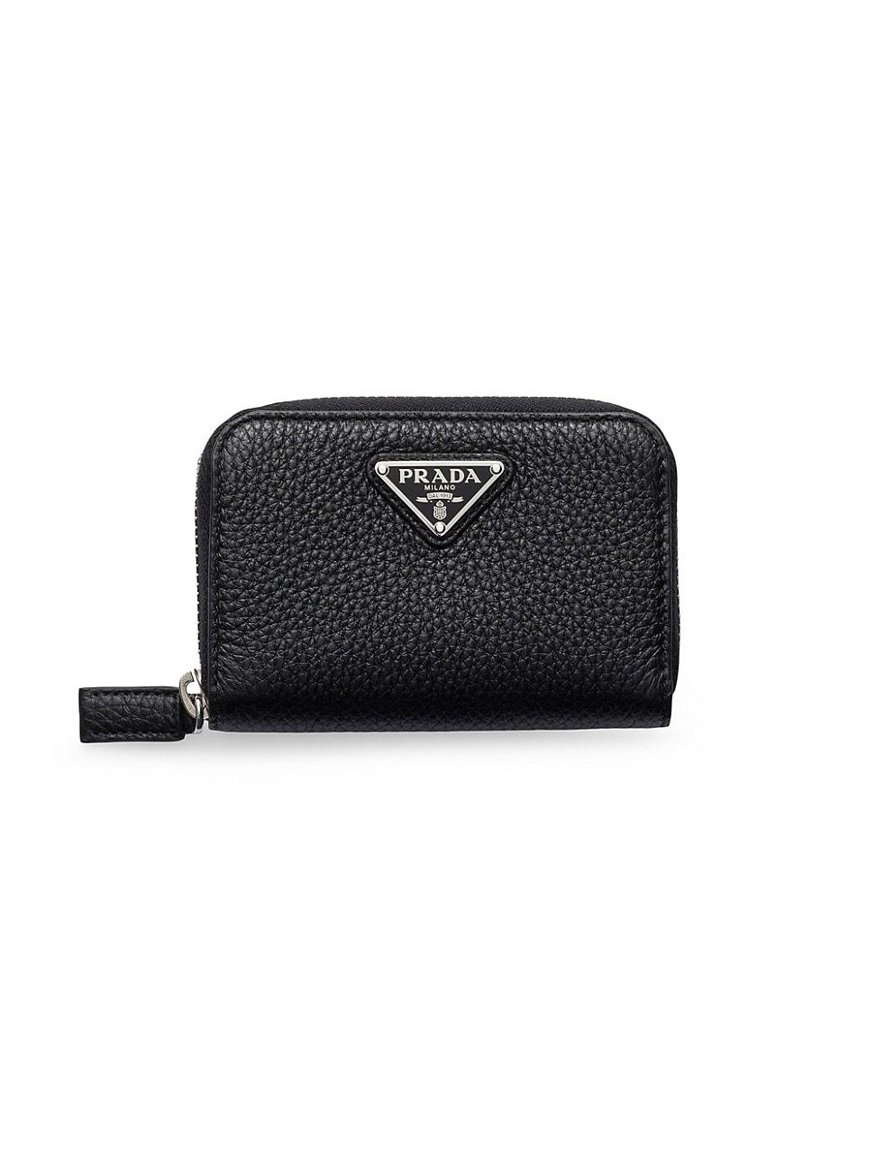 Sleek lines and the iconic enameled metal triangle logo characterize this leather coin purse with an internal pocket and two card slots. Zipper closure Enameled metal triangle logo Two card slots One internal pocket Moire and leather lining 100% Calf Leather Imported SIZE 11W x 7.5H. Lsd Rtw - Prada Rtw > Prada > Saks Fifth Avenue > Barneys. Prada. Color: Black.