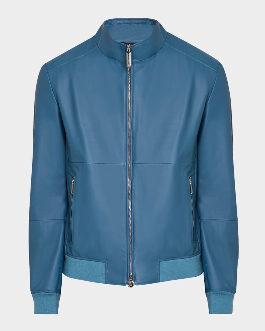 Mens Leather Full-Zip Blouson Jacket