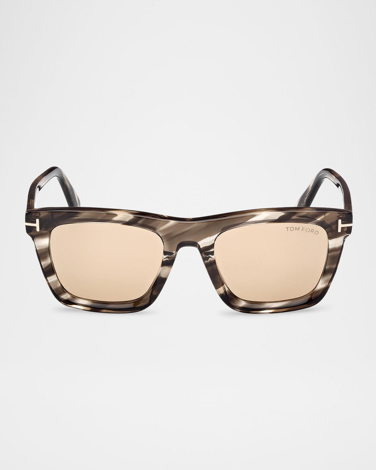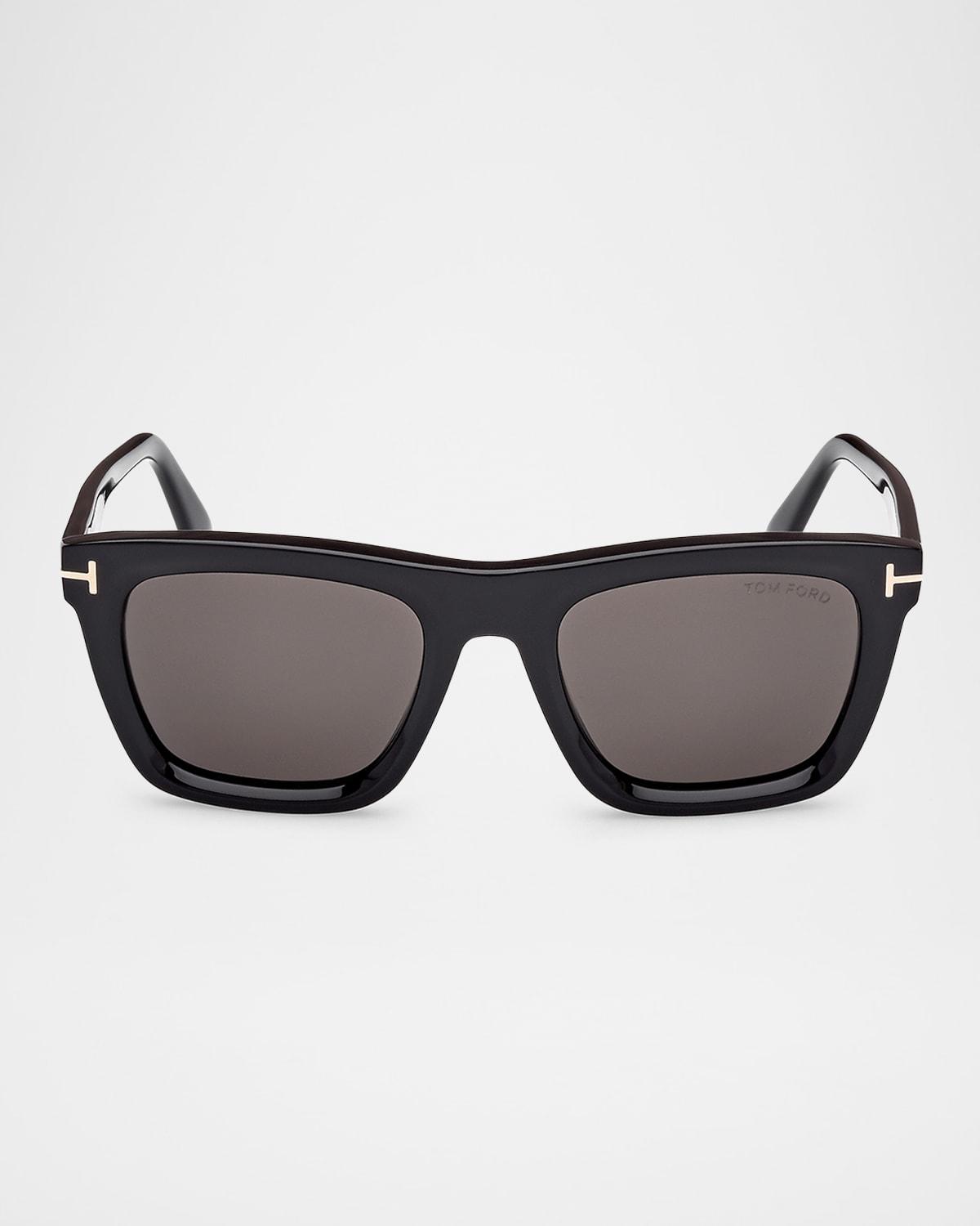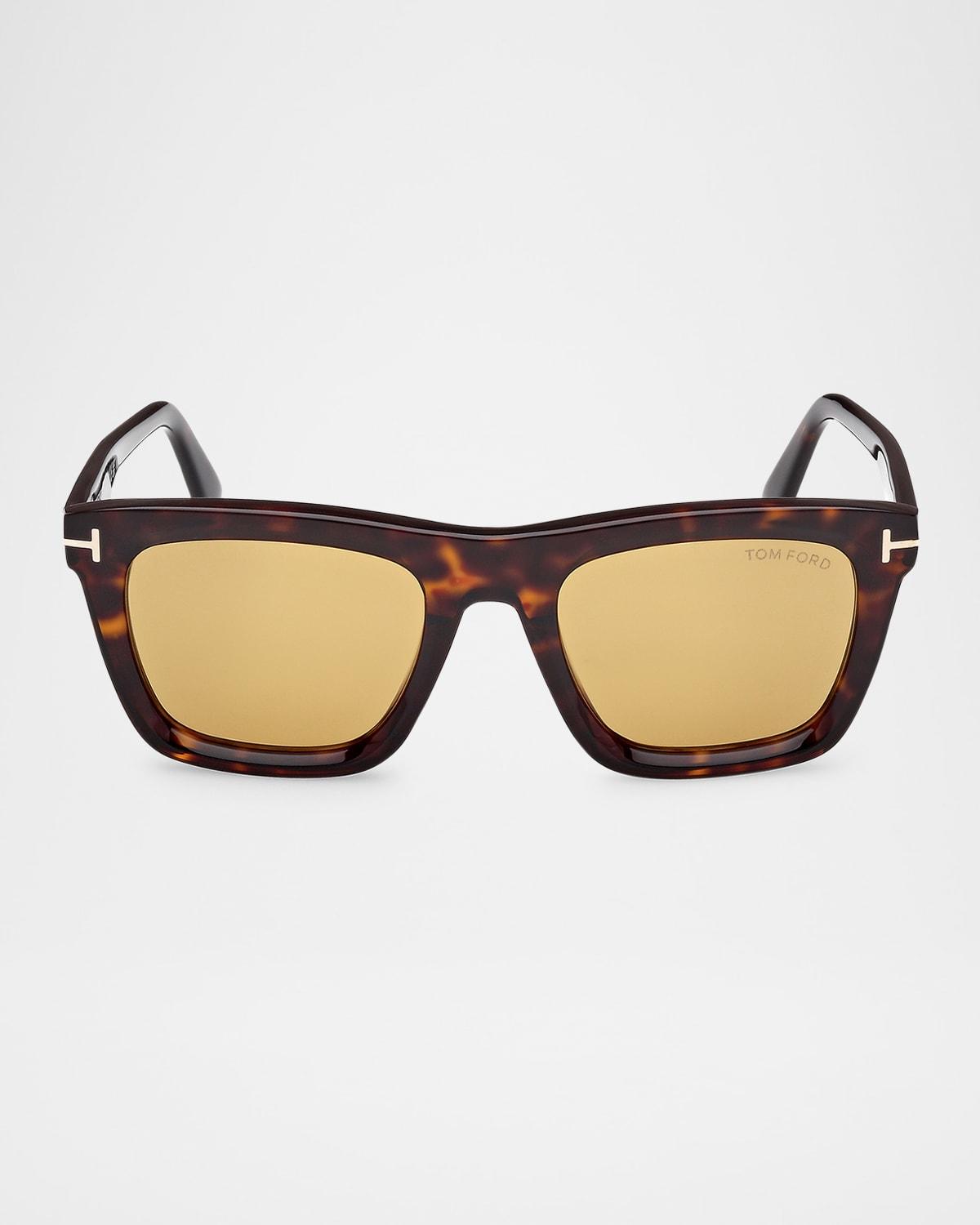 TOM FORD "Lelio" square sunglasses in acetate Lens/bridge/temple (in mm): 52-21-145 Solid-color lenses Logo on the left lens Saddle nose bridge Metal T-temple decoration Tapered arms Branded temple tips Acetate Spot clean 100% UVA/UVB protection Made in Italy Proposition 65 warning for California residents