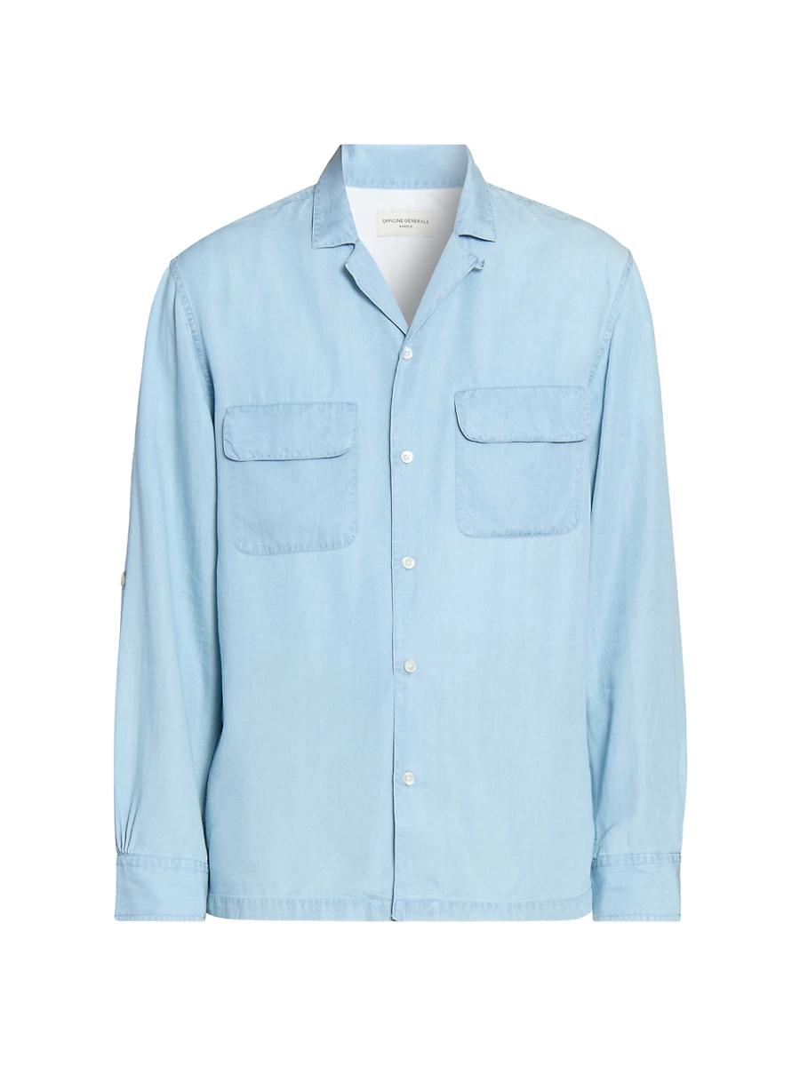 Officine Gnrales Leto shirt is crafted of washed lyocell and features notch lapels, chest flap-patch pockets, and a front button closure. Notch lapels Long sleeves, barrel cuffs Chest flap-patch pockets Front button closure 100% lyocell Dry clean Made in Portugal SIZE & FIT Model measurements: 62 tall, 40 chest, 31 waist Model is wearing a US size Medium. Mens Adv Contemporary - Mens Emerging Designer > Officine Gnrale > Saks Fifth Avenue > Barneys. Officine Gnrale. Color: Light Blue. Size: XL.