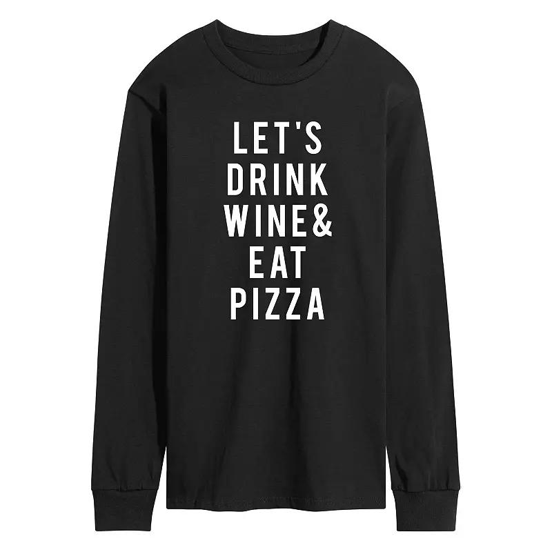 Any guy will love this playful Mens Lets Drink Wine And Eat Pizza Graphic Tee. FEATURES Crewneck Long sleeveFABRIC & CARE Solid colors: cotton, Heather: cotton, polyester Machine wash Imported Size: XXL. Color: Black. Gender: male. Age Group: adult.
