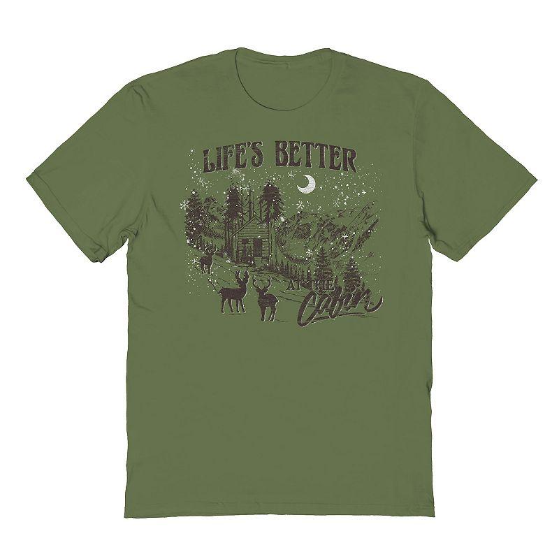 Celebrate the holidays with this Mens Lifes Better at the Cabin Graphic Tee. Celebrate the holidays with this Mens Lifes Better at the Cabin Graphic Tee. FEATURES Crewneck Short sleeveFABRIC & CARE Cotton Machine wash Imported Size: XXL. Color: Dark Green. Gender: male. Age Group: adult.