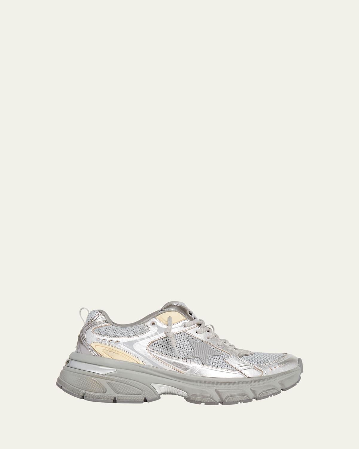 Golden Goose Lightstar lowtop sneakers in mesh fabric and leather Livedin finish Flat chunky heel Reinforced round toe Laceup vamp Label on the tongue Padded collar Backstay pull tab Star on the side Rubber outsole Lining: Polyester/leather/spandex Made in Italy