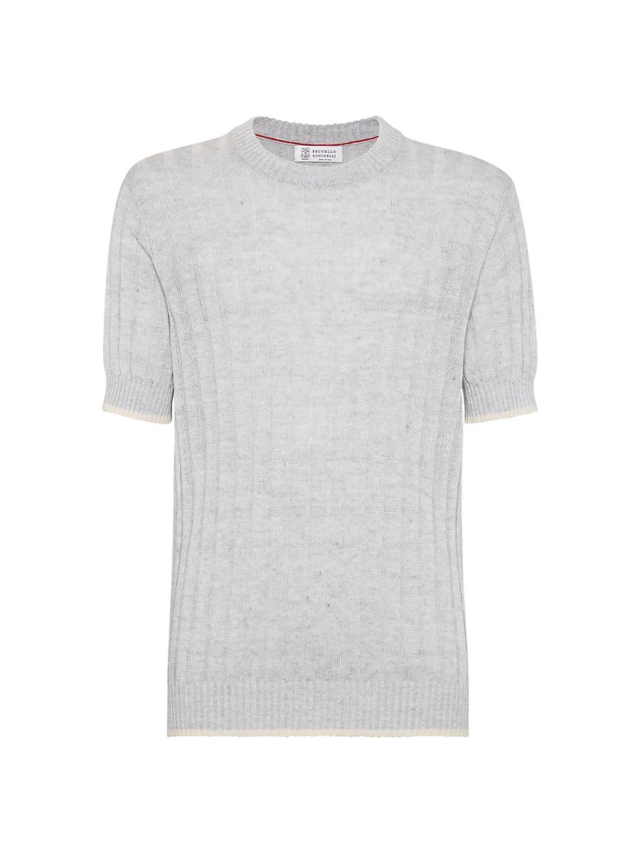 Linen and cotton flat rib knit T-shirt. Crew-neck Rib knit Regular fit Hand wash only. Dry garment on a horizontal surface, iron at medium temperature. Alternatively, delicately dry clean garment 77% linen / 23% cotton Made in Italy. Lsd Rtw - Brunello Cucinelli Rtw > Brunello Cucinelli > Saks Fifth Avenue > Barneys. Brunello Cucinelli. Color: Fog. Size: 42.