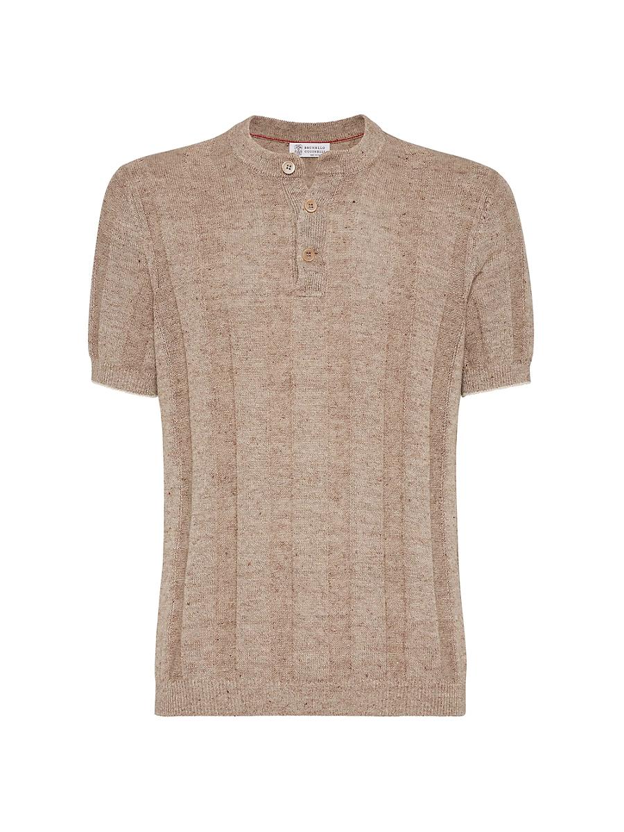 Linen and cotton textured rib knit T-shirt with Henley collar. Button opening Henley collar Rib knit Regular fit Hand wash only, dry garment on a horizontal surface, iron at medium temperature, alternatively, delicately dry clean garment 77% linen, 23% cotton Made in Italy. Lsd Rtw - Brunello Cucinelli Rtw > Brunello Cucinelli > Saks Fifth Avenue > Barneys. Brunello Cucinelli. Color: Bark. Size: 36.