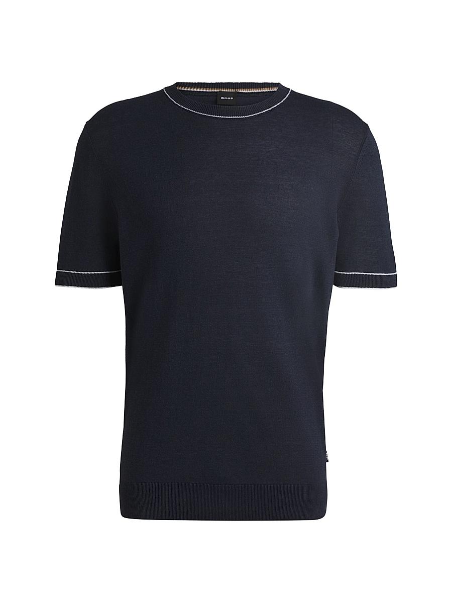 A versatile option for everyday wear, this regular-fit Boss Menswear sweater is knitted in a fresh, summery blend. Regular fit Neckline: Crewneck Tipping adds a sporty touch Short sleeves Standard length Main Material: Linen Imported. Lsd Mens - Mens Rtw Lsd Mp > Boss > Saks Fifth Avenue > Barneys. BOSS. Color: Open White. Size: XXL.
