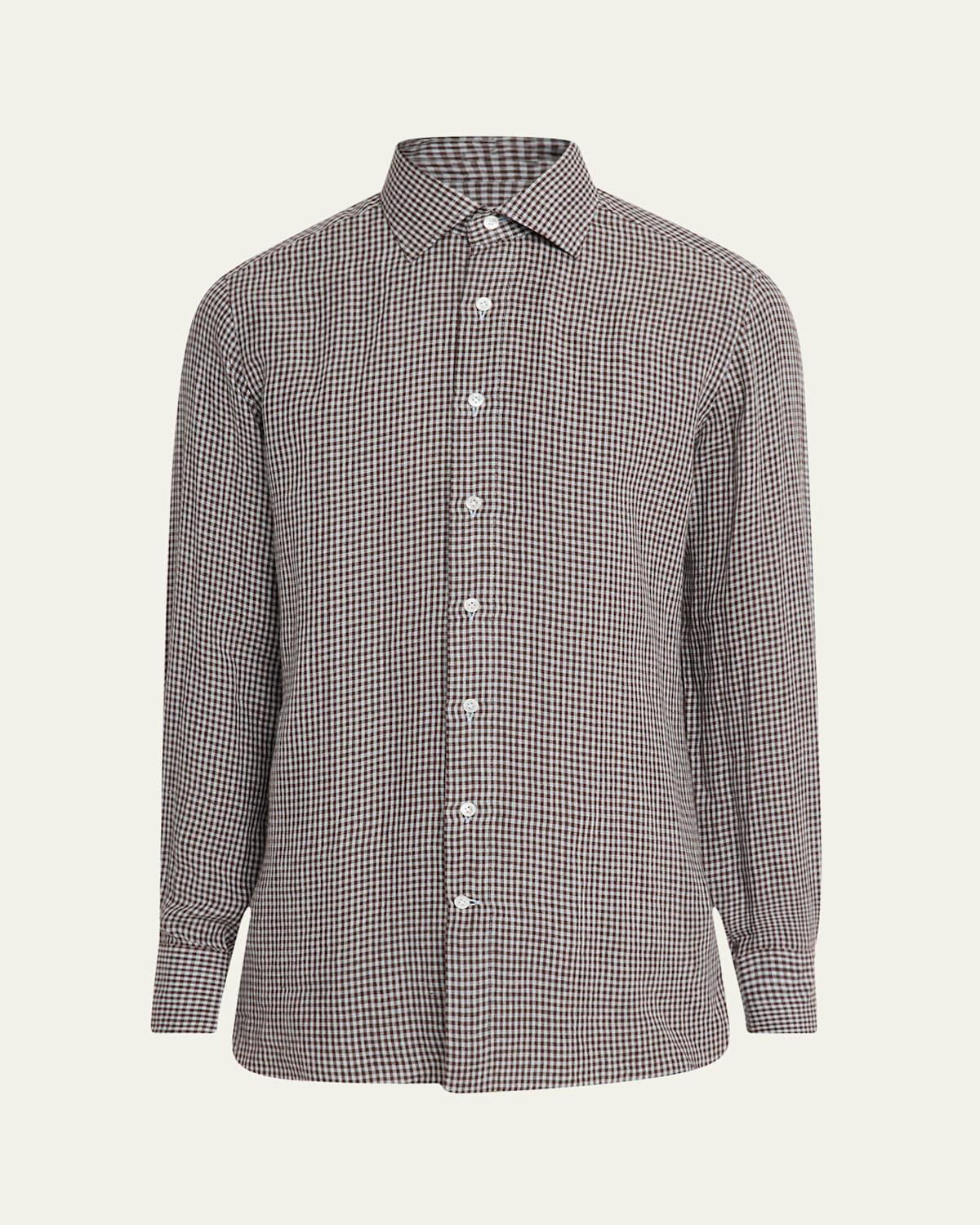 Mens Linen Gingham Check Casual Button-Down Shirt