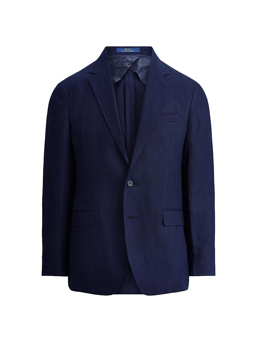 Crafted of linen, this Polo Ralph Lauren sportscoat is styled with a notched collar, long sleeves, and a two-button closure. This coat is designed with pockets at the chest and sides. Notched collar Long sleeves Button-front closure Chest welt pocket Side flap pockets 100% linen Lining: Viscose, acetate Undercollar: 100% silk Dry clean Made in Portugal SIZE & FIT About 29.50 from shoulder to hem Model measurements: 62 tall Model is wearing a US size 40 ABOUT THE BRAND Synonymous with Americana style since 1967, Ralph Lauren started with one item-the necktie-under the name Polo. The house has since stood for the epitome of refined dressing for men. From collegiate sweaters and polos to evening-ready suiting and tailored coats, theres a timeless piece for every occasion. Men Luxury Coll - Polo Blue Label > Polo Ralph Lauren > Saks Fifth Avenue > Barneys. Polo Ralph Lauren. Color: Navy. Size: 44.