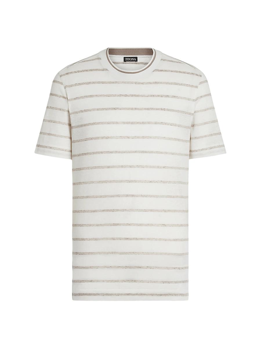 This pure linen T-shirt exudes modern charm with striped pattern. Short sleeves Knitted double crewneck collar Folded hem and cuffs Striped pattern Knitted details on the vents Regular fit Made in Italy FABRIC DETAILS 100% Linen Wash by hand. Do not bleach. Do not tumble dry. Line drying in the shade. Iron at max 110C. Professional dry cleaning in hydrocarbons. Lsd Mens - Zegna Rtw > Zegna > Saks Fifth Avenue > Barneys. ZEGNA. Color: White Light Taupe. Size: 40.