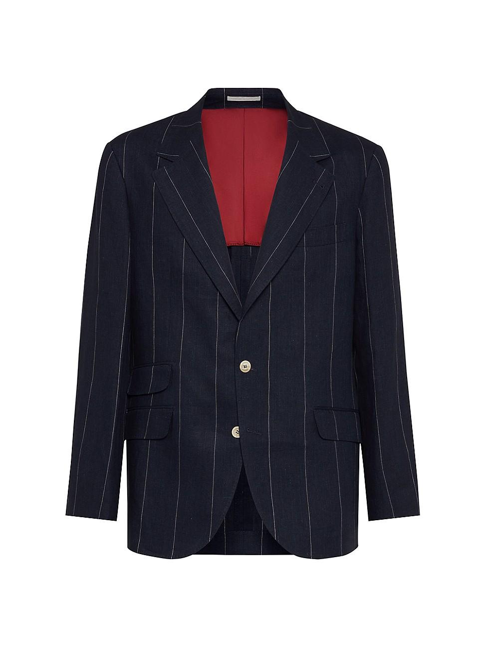 Linen wide chalk stripe deconstructed Cavallo blazer. 3-roll-2 closure with horn buttons Welt pockets with flap, ticket pocket with flap and chest pocket Cuffs have four horn buttons and functional buttonholes Cupro half lining Two interior pockets with button closure and pen holder Drop 7 Double back vent Request dry cleaning at specialist cleaners only, do not bleach do not tumble dry, iron at low temperature 100% linen Made in Italy. Lsd Rtw - Brunello Cucinelli Rtw > Brunello Cucinelli > Saks Fifth Avenue > Barneys. Brunello Cucinelli. Color: Navy Blue. Size: 48.
