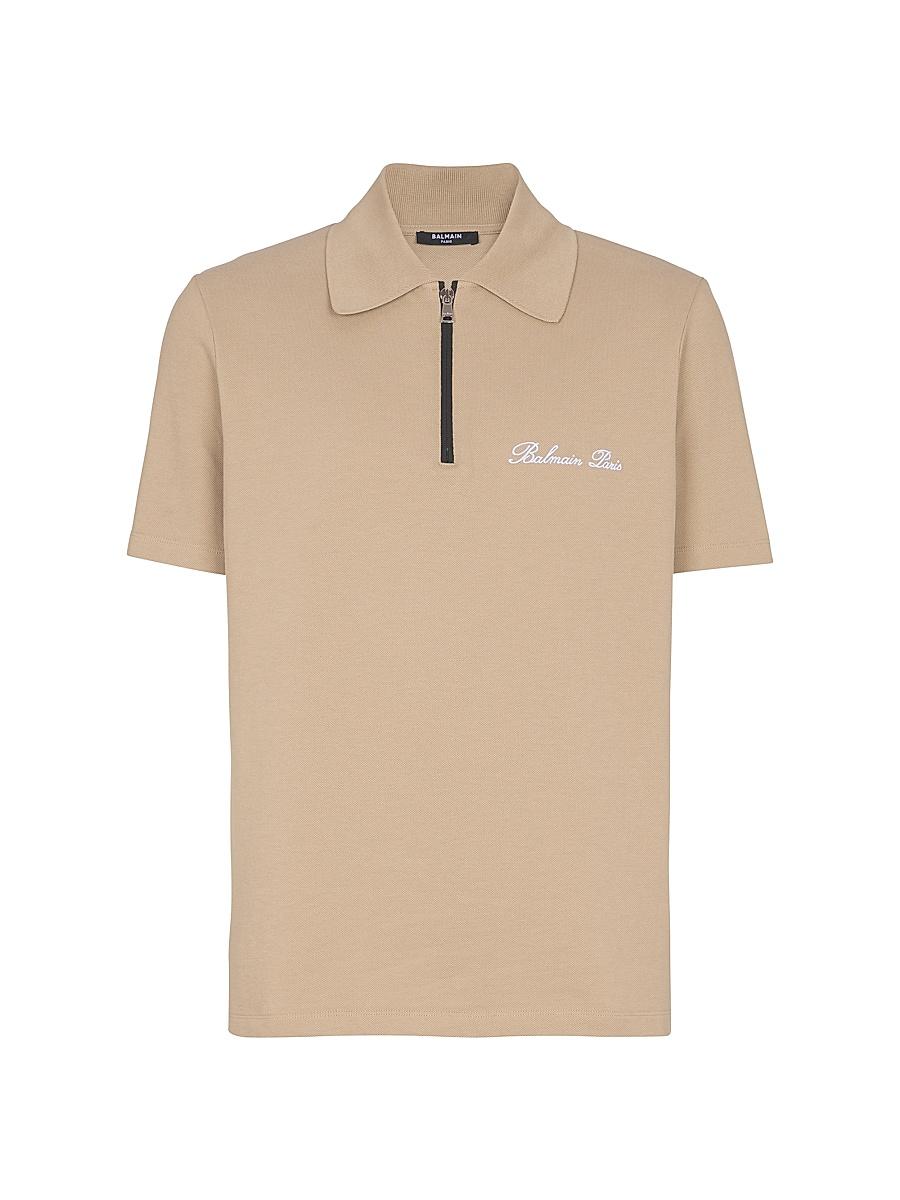 This Balmain polo shirt, crafted of soft cotton, features a spread collar, logo embroidery at the chest, and a quarter-zip closure. Spread collar Short sleeves Quarter-zip closure 100% cotton Dry clean Made in Portugal SIZE & FIT Model measurements: 62 tall, 40 chest, 31 waist Model is wearing a US size Medium. Men Advcd Dsgnr - Advanced Designer Collec > Balmain > Saks Fifth Avenue. Balmain. Color: Camel Blanc. Size: XL.