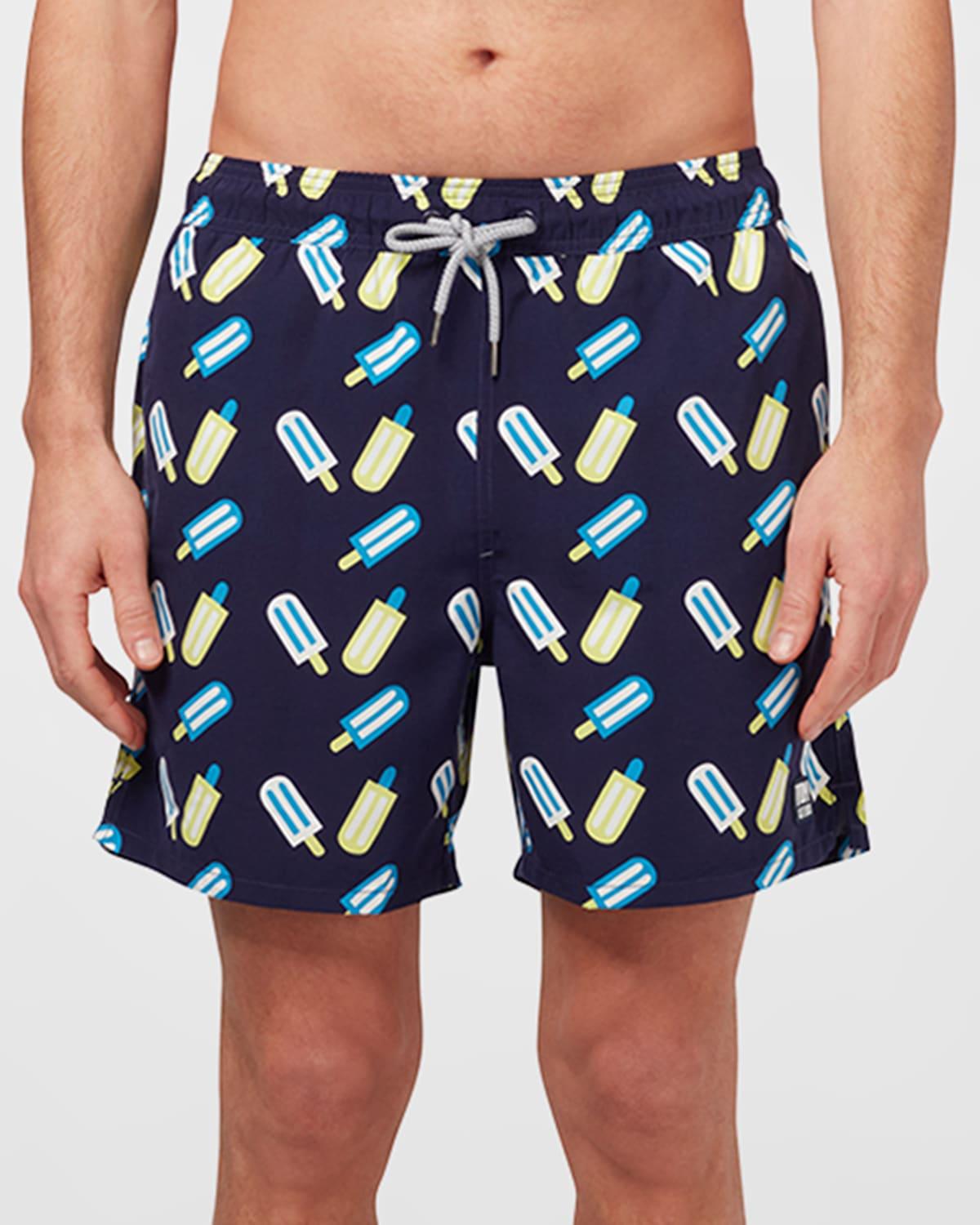 Tom & Teddy swim trunks in vibrantlollipop print Salt and chlorine-resistant materials help prevent fading and wear in the water Elasticized drawstring waist Side slip pockets; back flap pocket Eyelets at back for drainage Mesh lining Polyester Machine wash, line dry Imported