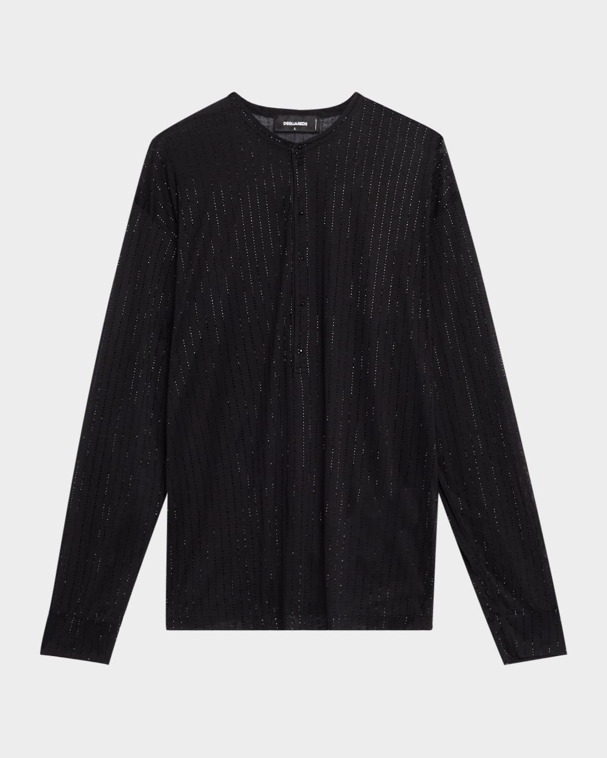Dsquared2 T-shirt adorned with tonal embroidery in vertical stripes Round neckline Five-button placket Long sleeves Loose fit Pullover style Cotton Made in Italy