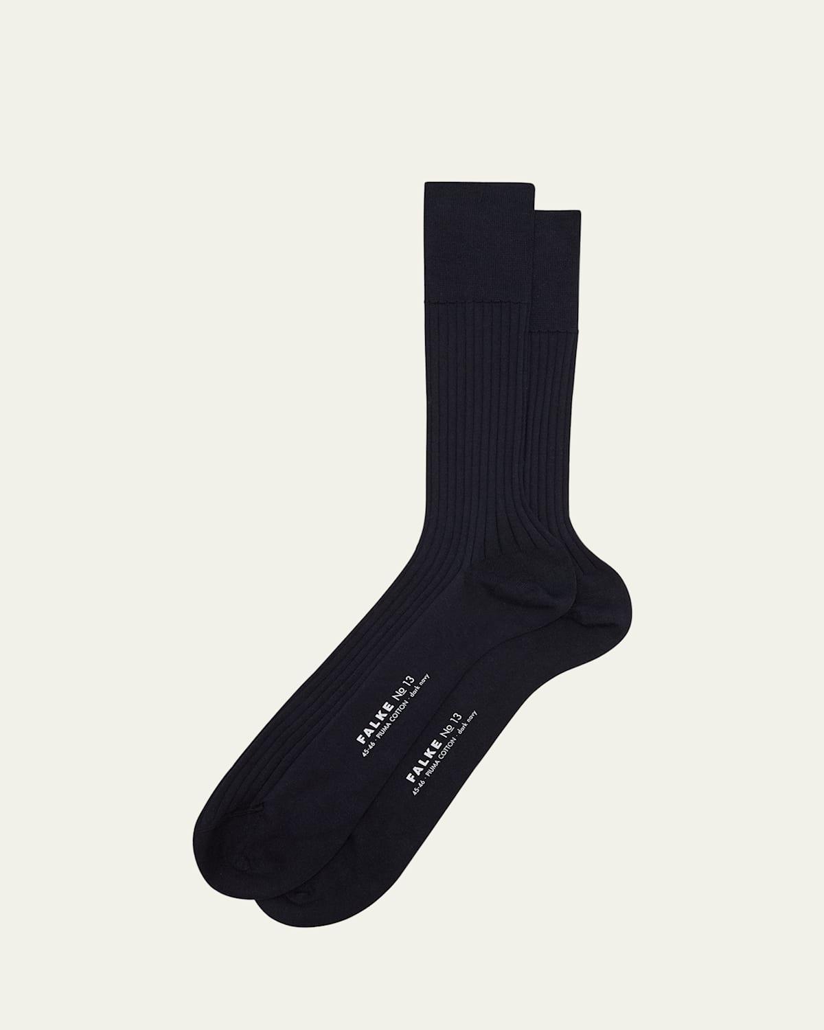 Falke crew socks crafted from extra-long staple Piuma cotton with silky fibers of extravagant length and superior strength Piuma is light in weight with a striking vibrancy. It is nurtured under Egyptian sun and ring-spun in Italy, resulting in a supple and durable finish. Banded cuffs to prevent slipping Cotton/polyamide Machine wash cold Made in Italy Model is 6'1"/185cm.