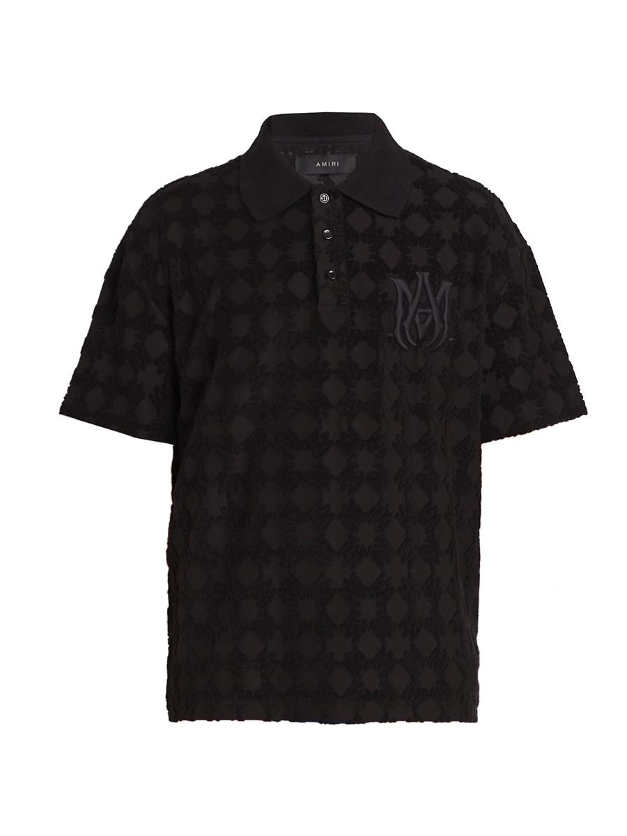 Crafted of a cotton and nylon toweling blend, this polo shirt highlights Amiris MA Quad monogram logo pattern. An embroidered logo graces the left chest. Spread collar Short sleeves Front button closure 80% cotton/ 20% nylon Dry clean Made in Italy SIZE & FIT Model measurements: 62 tall, 40 chest, 31 waist Model is wearing a US size Medium ABOUT THE BRAND Designer and California native Mike Amiri got his start making handcrafted pieces for rockstars to wear on stage. He brings the same L.A. rocker aesthetic to his eponymous label, which is known for its deconstructed jeans, leather jackets and broken-in flannels. Men Advcd Dsgnr - Advanced Designer Collec > Amiri > Saks Fifth Avenue > Barneys. Amiri. Color: Black. Size: Medium.
