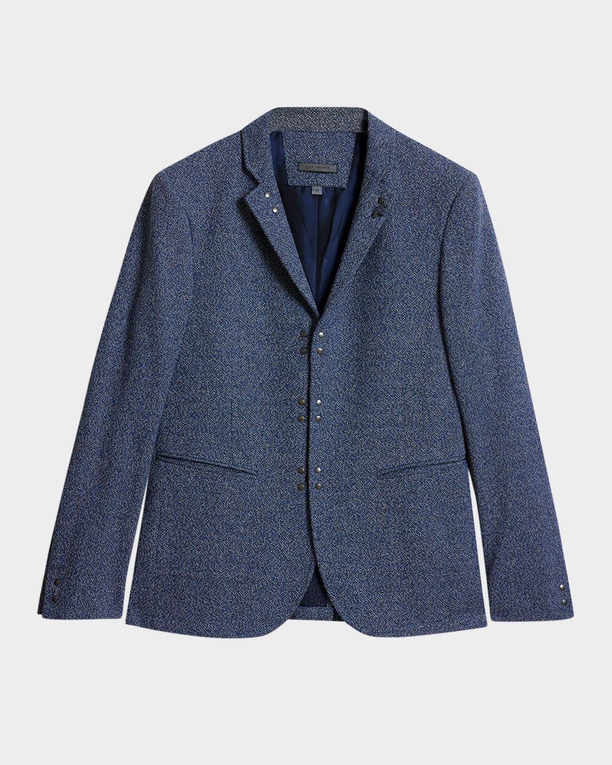John Varvatos "Madison" jacket, crafted with a distinctive crinkle effect and features stud embellishments Notch lapels Hook and bar closure Long sleeves Front jet pockets Slim fit Cotton/nylon/polyamide Lining: Cupro Dry clean Made in Italy