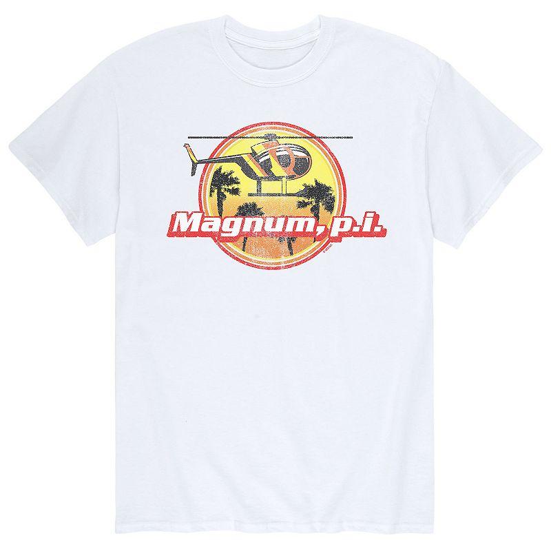 Show off your love for classic movies in this Magnum PI t-shirt. Our adult tee is lightweight, soft and durable; perfect for everyday wear! | Magnum Pi Men's Magnum Sky Graphic T-Shirt, White, Large