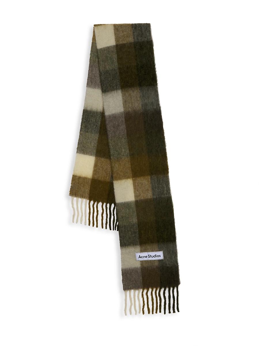 From the Main Collection. Acne Studios Vally scarf is crafted of a rich blend of alpaca, wool, and mohair. Adorned with a tonal checkered pattern, this warm accessory is finished with fringed ends. 33% alpaca hair/ 25% wool/ 22% nylon/ 20% mohair Wipe clean Made in Italy SIZE 11W x 98.4L ABOUT THE BRAND An acronym for Ambition to Create Novel Expression, founder Jonny Johansson started Stockholm-based Acne Studios as a collective inspired by art and youth culture. Starting with raw denim jeans-a signature item-the label advanced into casual wear, giving off-duty looks its stamp of minimal-cool. Men Accessories - Fashion Accessories > Acne Studios > Saks Fifth Avenue > Barneys. Acne Studios. Color: Taupe Green Black.