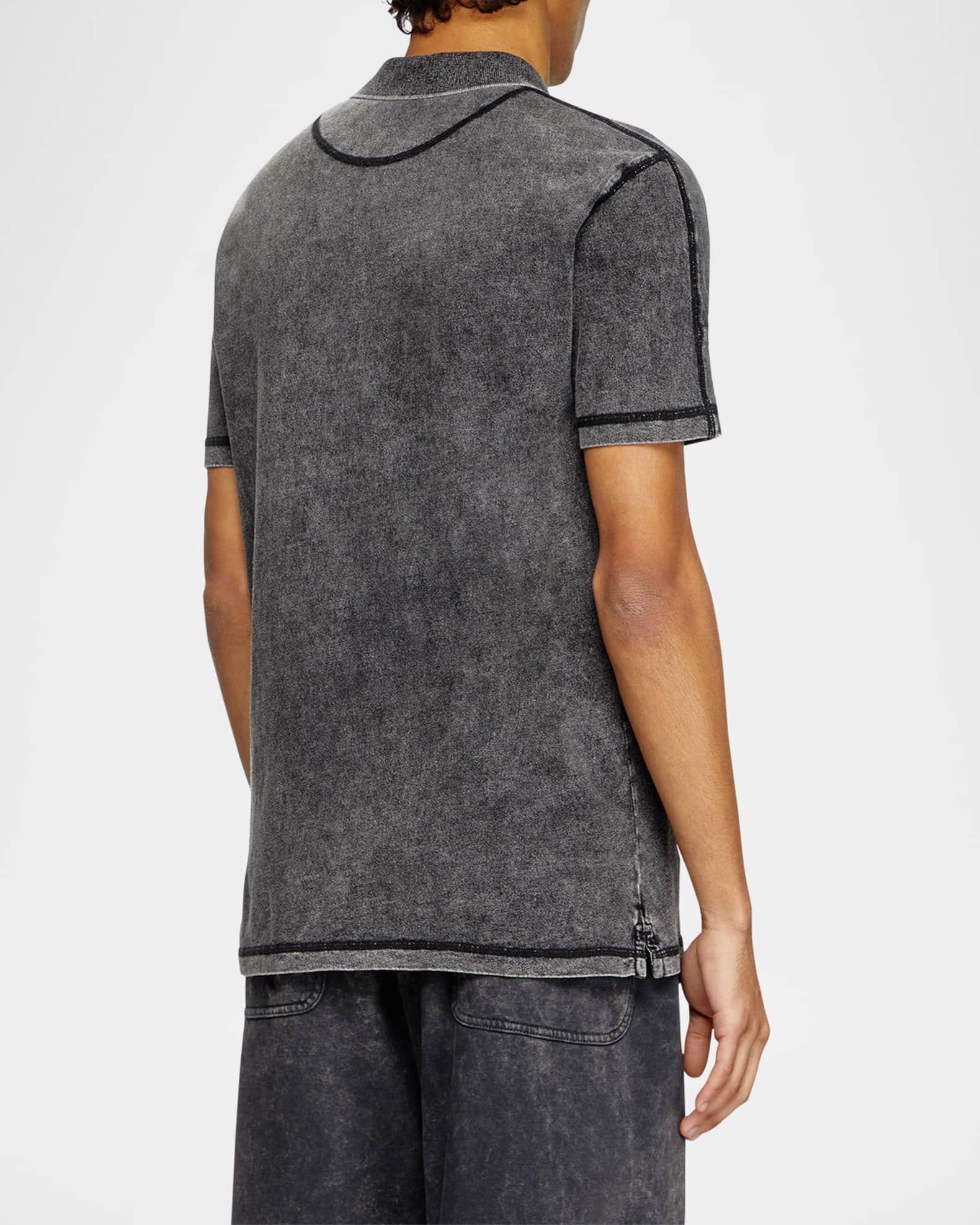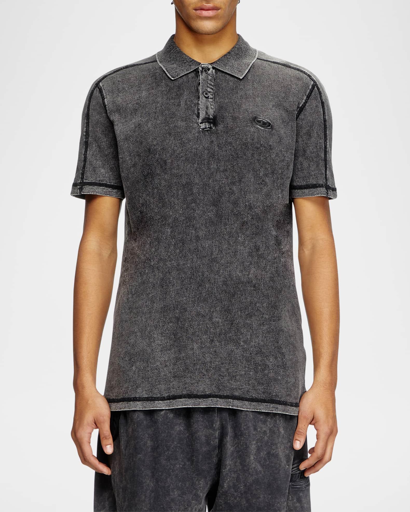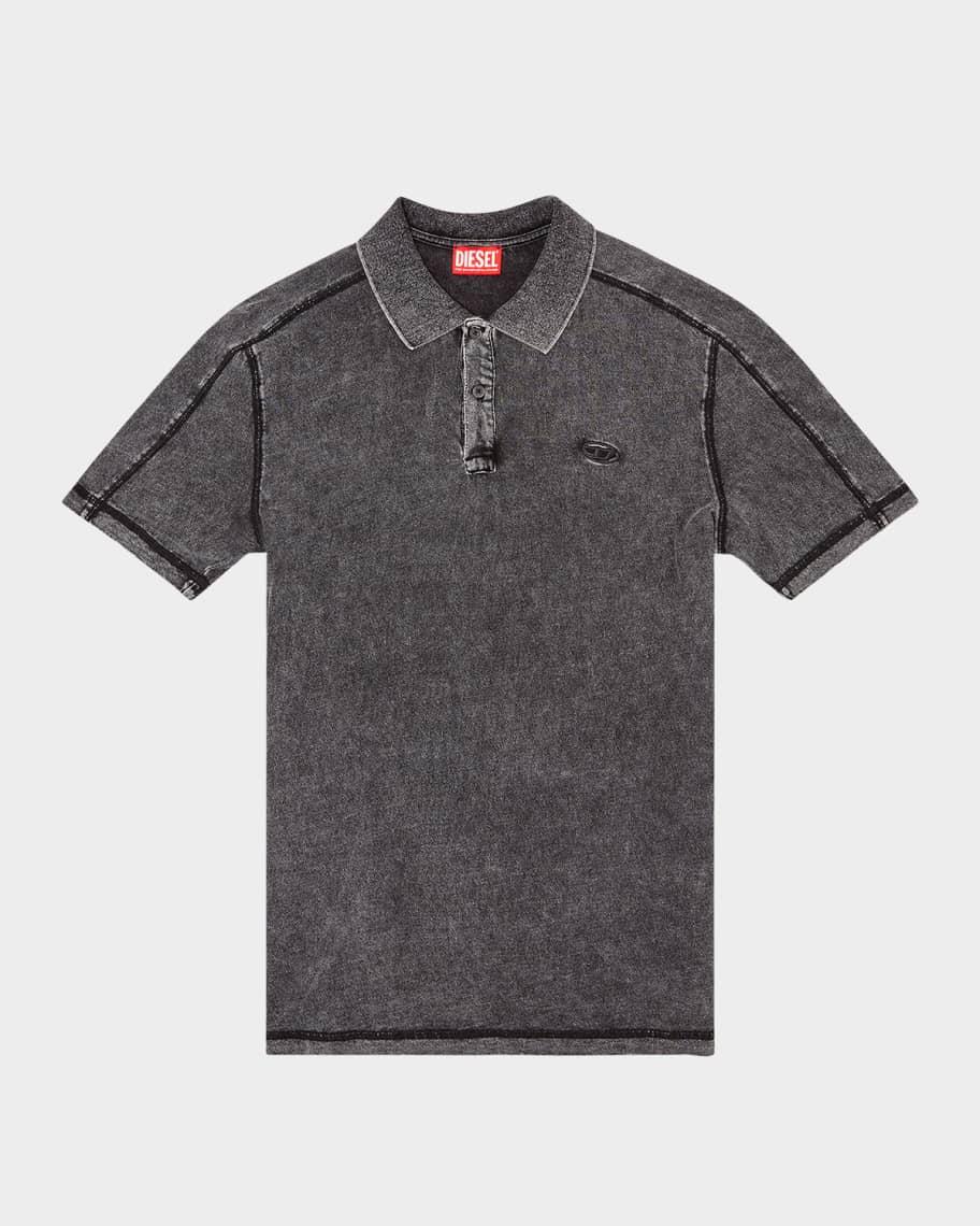 Diesel polo shirt made from weighty jersey with faded marble wash finish Classic spread collar Two-button placket Tonal external cover stitching Subtle embroidered oval D logo on chest Short sleeves Classic fit Cotton Machine wash cold Imported