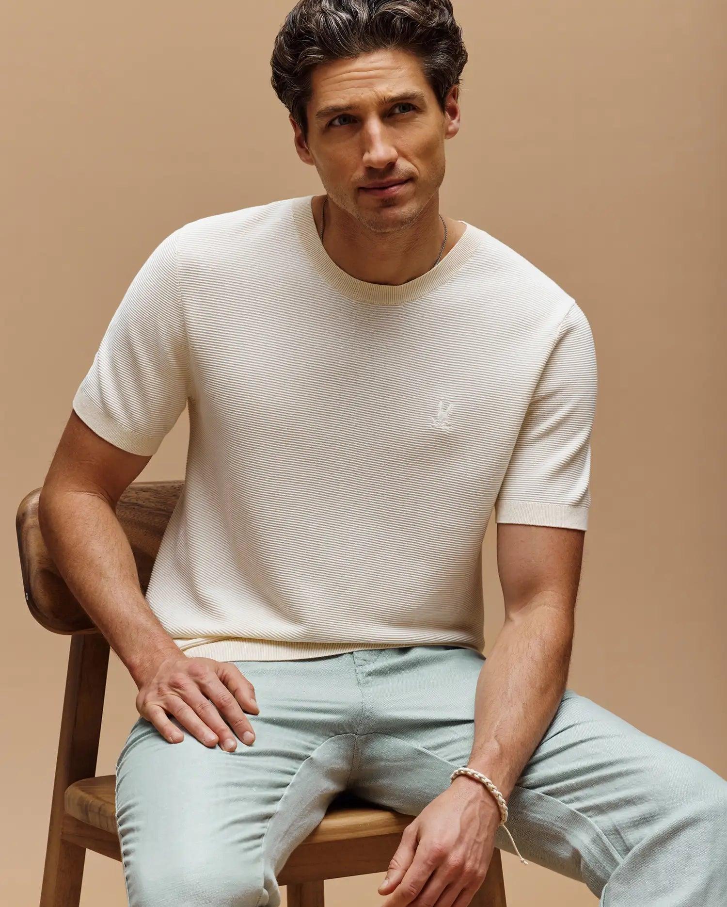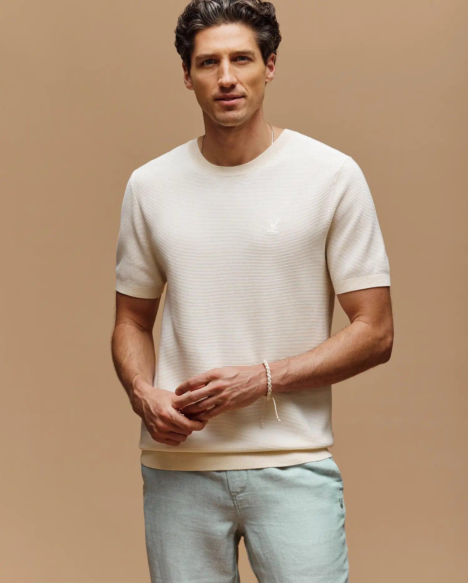 The Mens Mario Striped Sweater T in White from Psycho Bunny in blends contemporary design with lasting comfort—perfect for all-day wear.