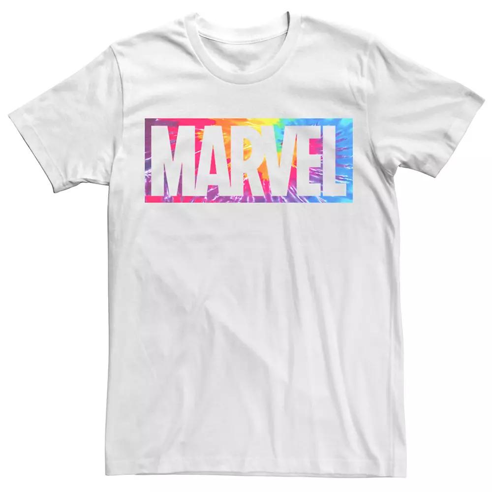 Men's Marvel Tie Dye Box Logo Typo Graphic Tee,