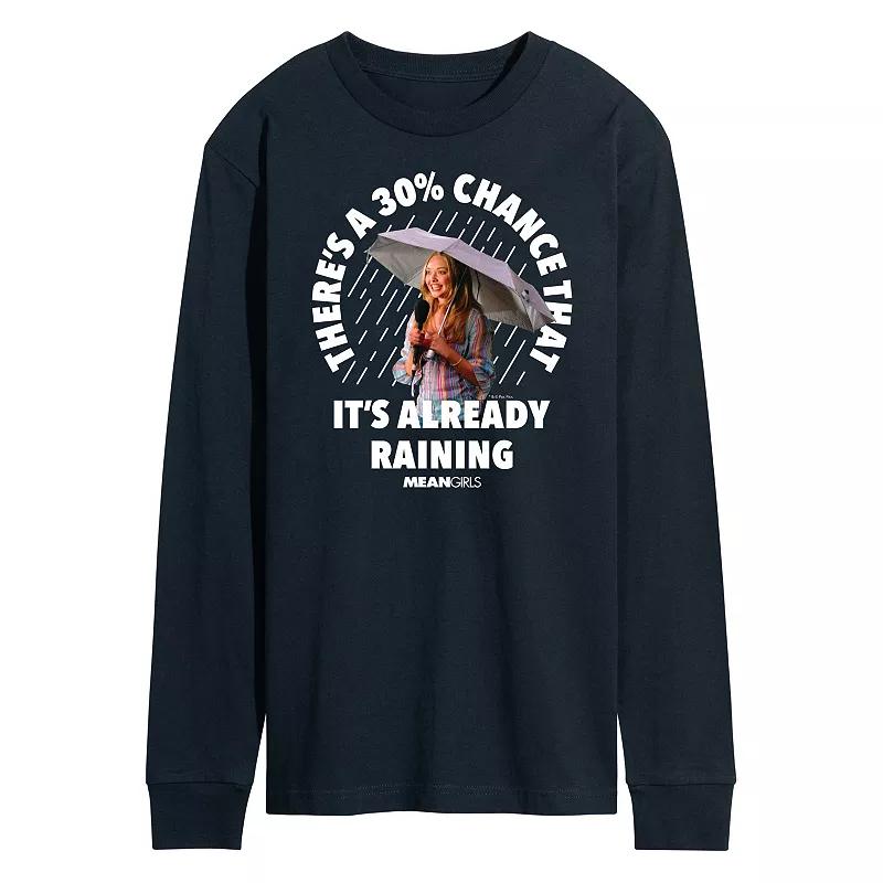 Keep an eye on style with this mens Mean Girls Its Already Raining Long Sleeve Graphic Tee. FEATURES Crewneck Long sleeveFABRIC & CARE Solid colors: cotton; Heather colors: cotton, polyester Machine wash Imported Color: Navy. Gender: male. Age Group: adult.